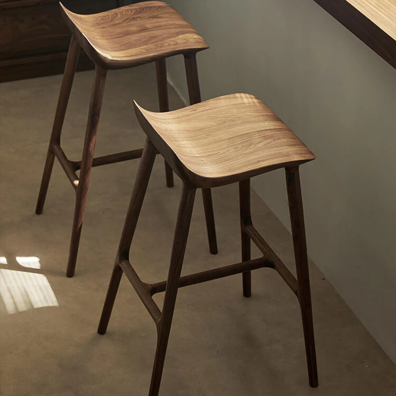 新中式デザインの無垢材バー椅子 - シンプルでスタイリッシュな家庭用アイランドテーブル用、デザイナーのリラックスバー椅子、ウォールナット材のハイバースツールで、あなたの空間を優雅に演出します!