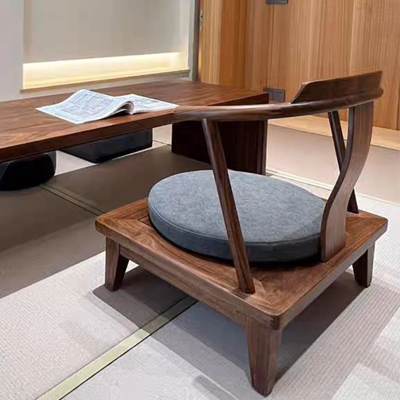 2025年新作!新中式実木製オーナーチェア - モダンでシンプルなデザイン、ウォールナット材使用のリビングルーム用座椅子。畳や茶室にもぴったりのスタイリッシュなアイテム!