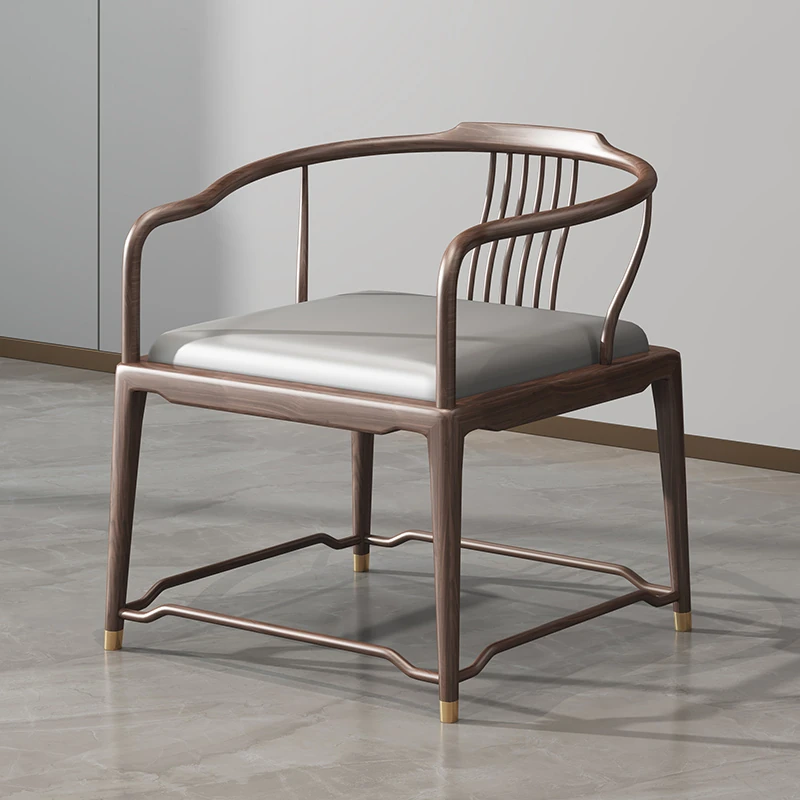 2025年新款!新中式実木ダイニングチェア - モダンでシンプルなデザイン、ウォールナット材使用のリビング用カジュアルチェア。心地よい座り心地で、古風な魅力を引き立てる一品です!
