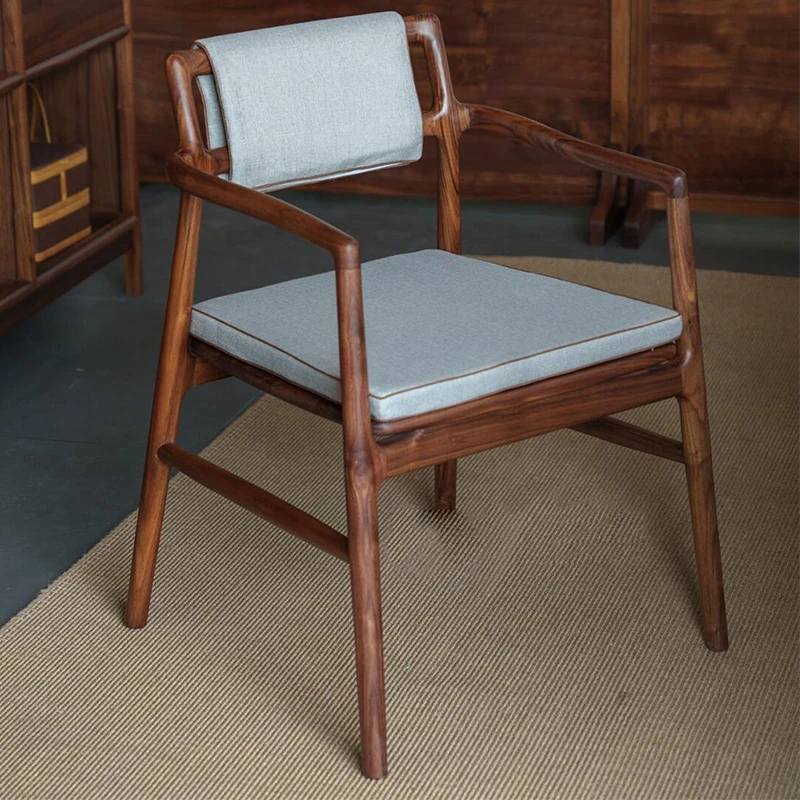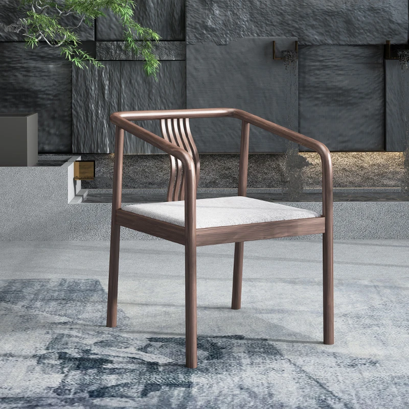 2025 New Chinese Style Solid Wood Dining Chair - Modern Minimalist Walnut Wood Lounge Chair for Home Living Room, Vintage-Inspired Design