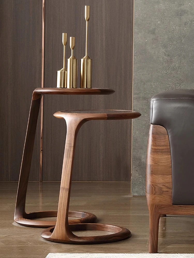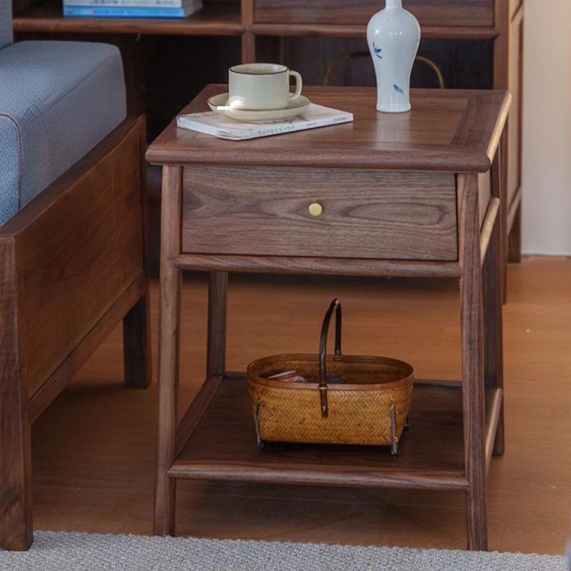 Modern Luxury Small Space Sofa Side Table - Movable Solid Wood Walnut Bedside Corner Table, Creative Storage Desk for Compact Living