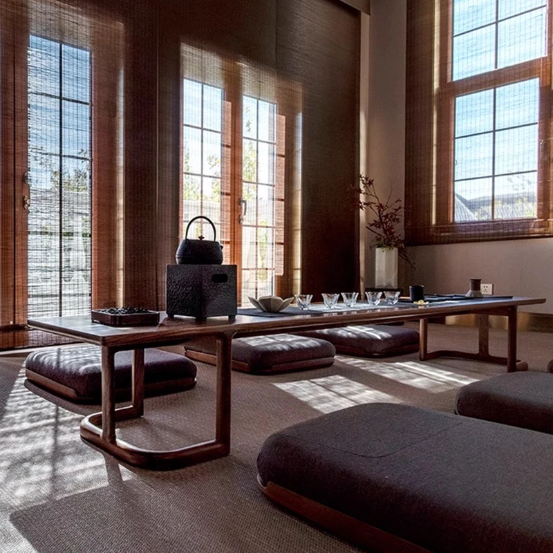 Japanese Tatami Tea Table - Zen Style New Chinese Tea Table and Chair Set, Compact Design in North American Black Walnut for Cozy Bay Windows