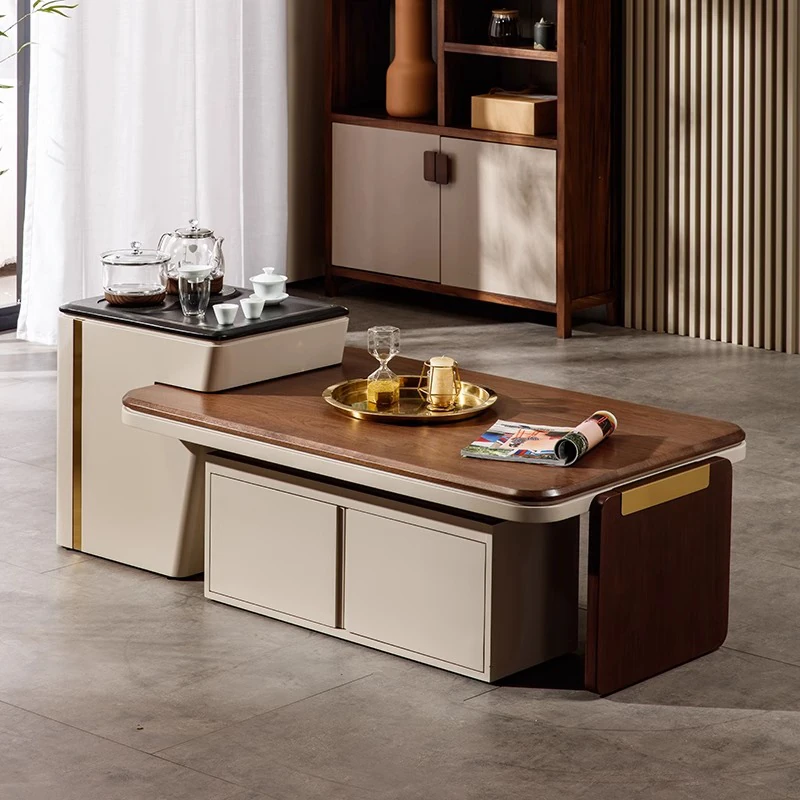 2025 New Modern Chinese Solid Wood Tea Table - Luxurious Walnut Coffee Table for Living Room, Perfect for Home Use, Elevate Your Space with Contemporary Style