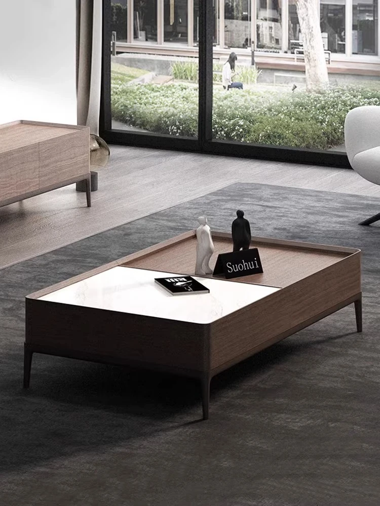 Modern Minimalist Italian-Style Coffee Table in Black Walnut - Designer High-End New Chinese Living Room Sofa Table
