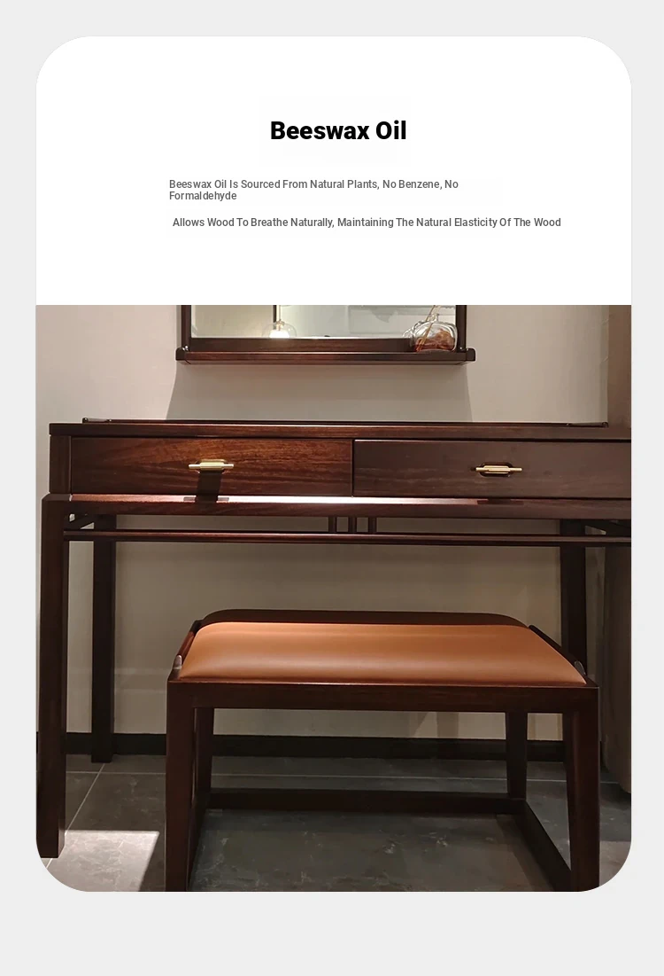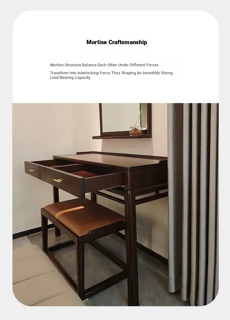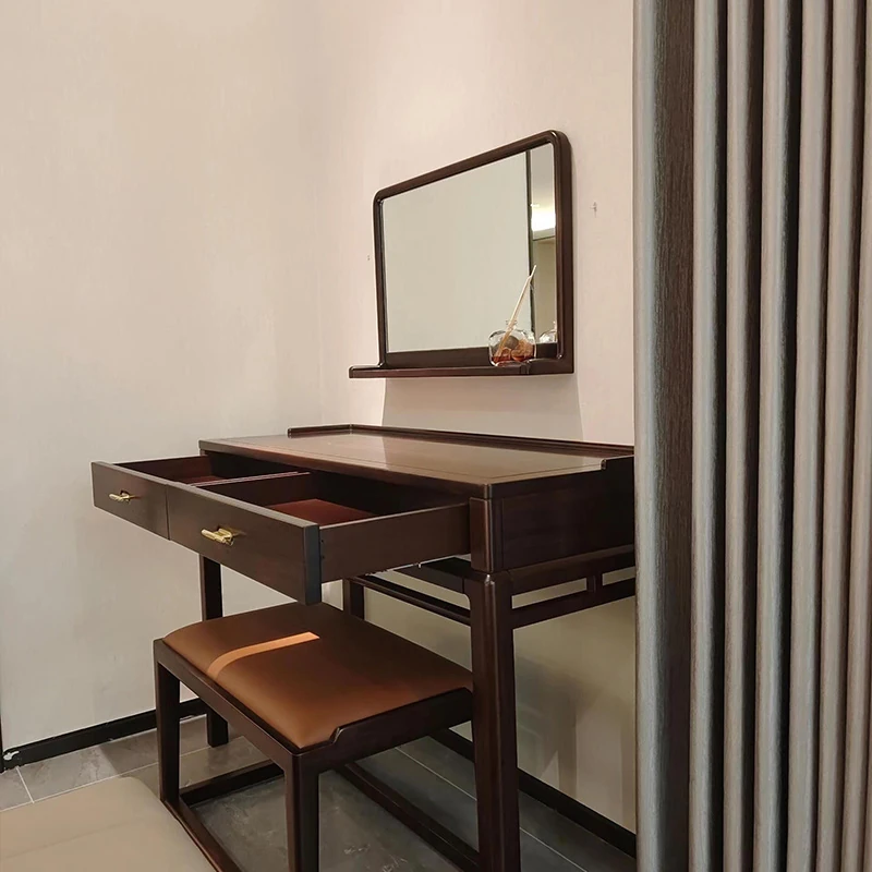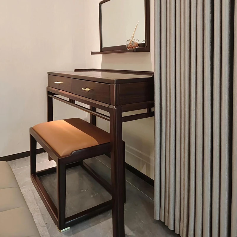 Modern Chinese Solid Wood Vanity Table with Stool - Walnut Finish, Minimalist Design Inspired by Song Dynasty Aesthetics for Your Bedroom