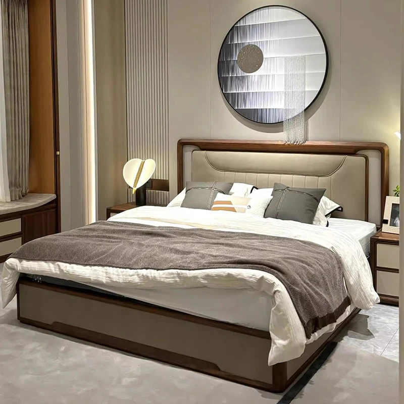 2025 New Modern Chinese Style Solid Wood Bed - Elegant Walnut Double Bed for Master Bedroom, Minimalist Design with a Touch of Luxury