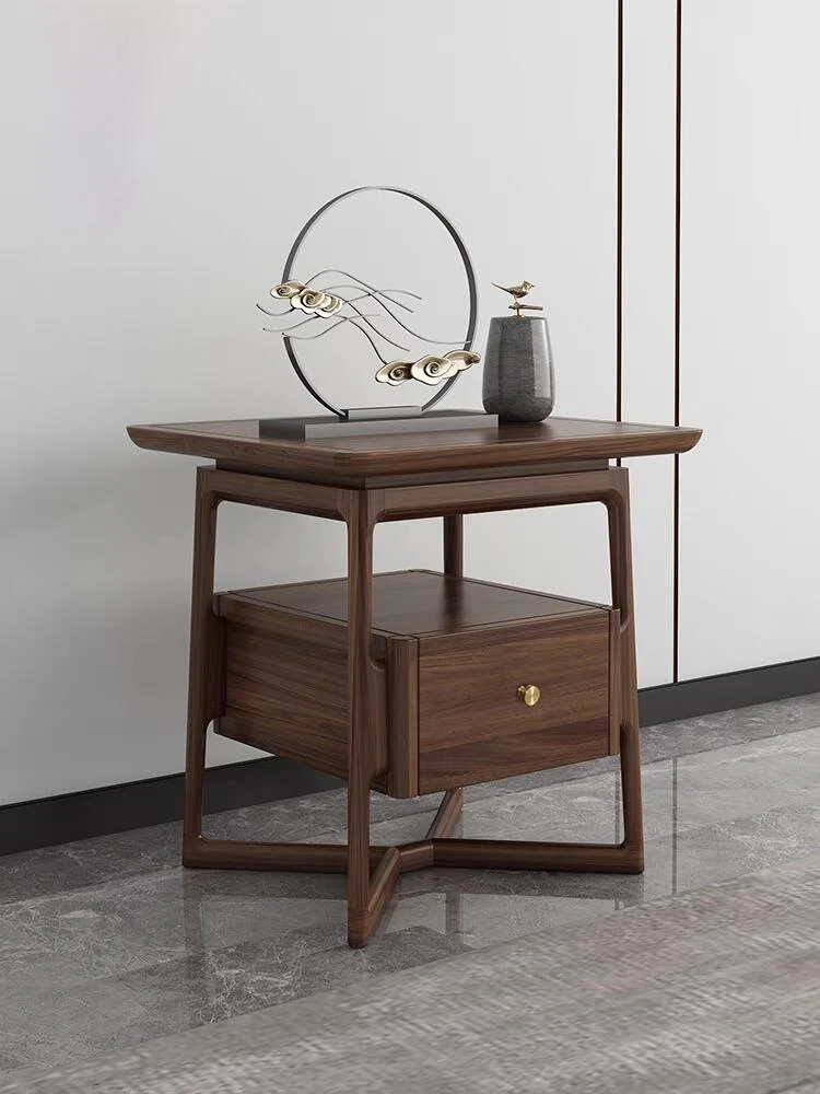 2025 New Chinese Style Solid Wood Nightstand - Modern Minimalist Bedroom Side Table in Walnut Finish, Perfect for Your Sofa or Bedside