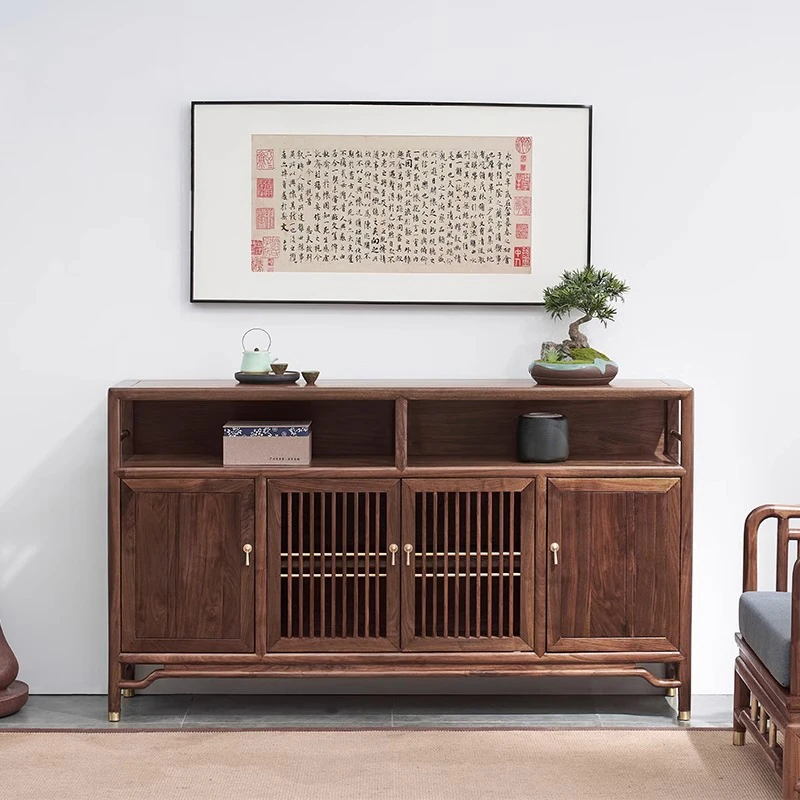 Modern Chinese-Style Entryway Storage Cabinet - Elegant Solid Wood Walnut Sideboard for Dining Room - Chic and Functional Storage Solution for Your Home