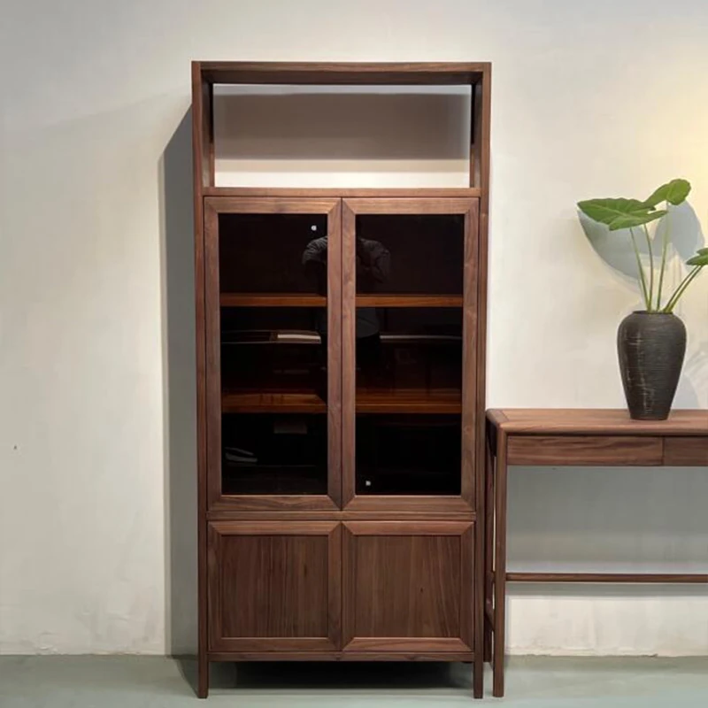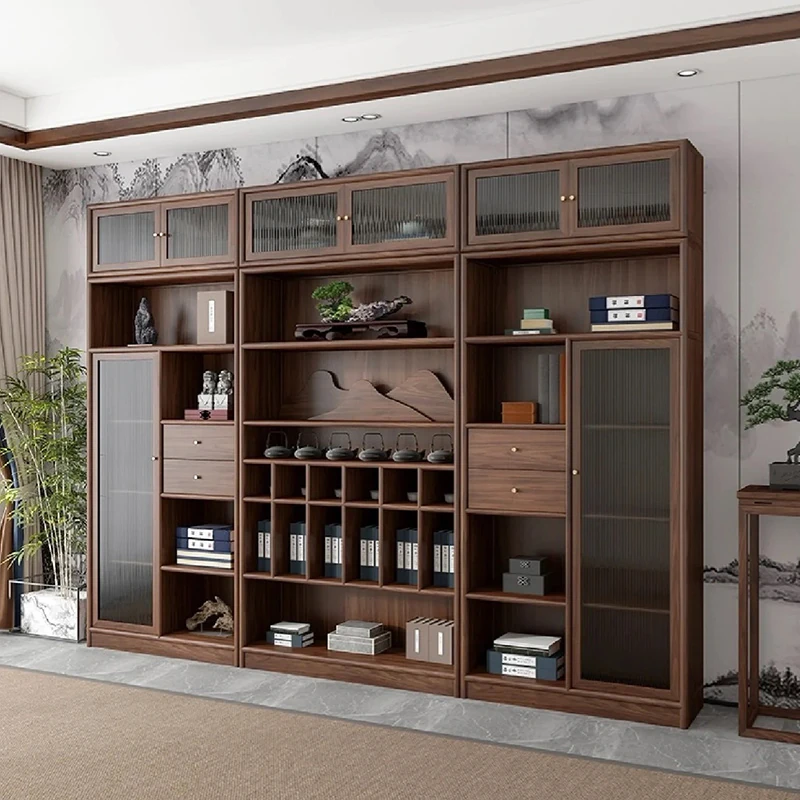 2025 New Chinese Style Bookshelf - Modern Minimalist Solid Wood Walnut Display Rack for Living Room and Tea Room Storage, Perfect for Organizing Books and Decor