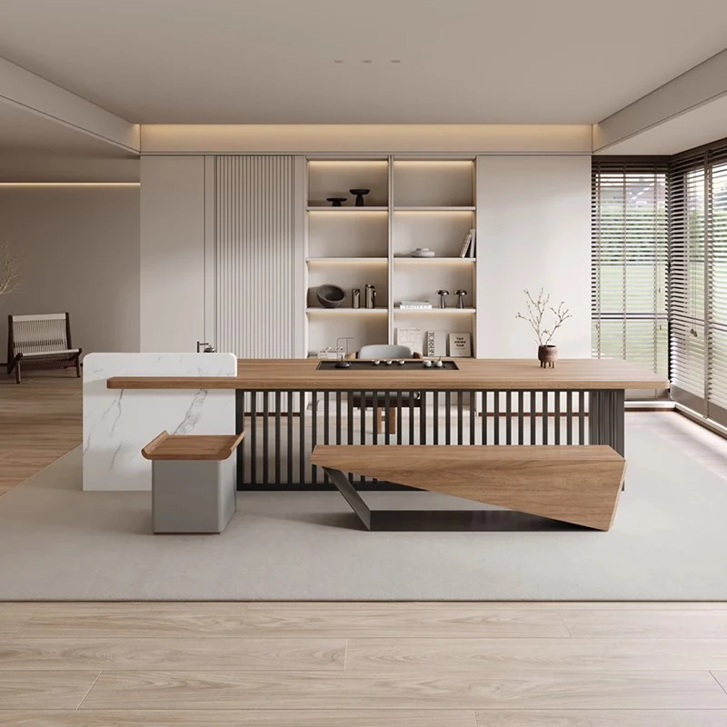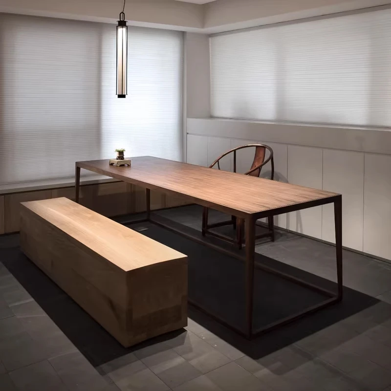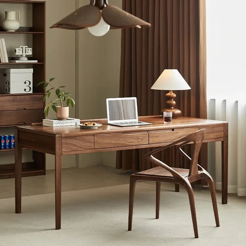 2025 New High-End Modern Chinese Style Solid Wood Computer Desk - Walnut Wood Minimalist Office Zen Table