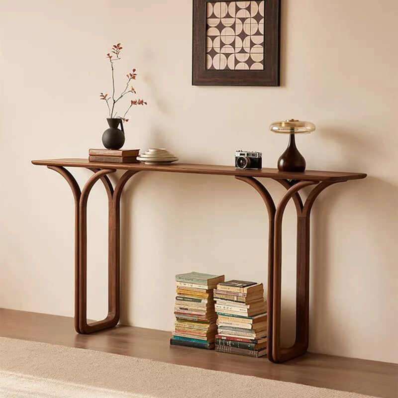 2025 New Modern Minimalist Chinese-Style Entrance Table - Solid Walnut Wood Console Table for Home, Perfect for Living Room and Wall Decoration