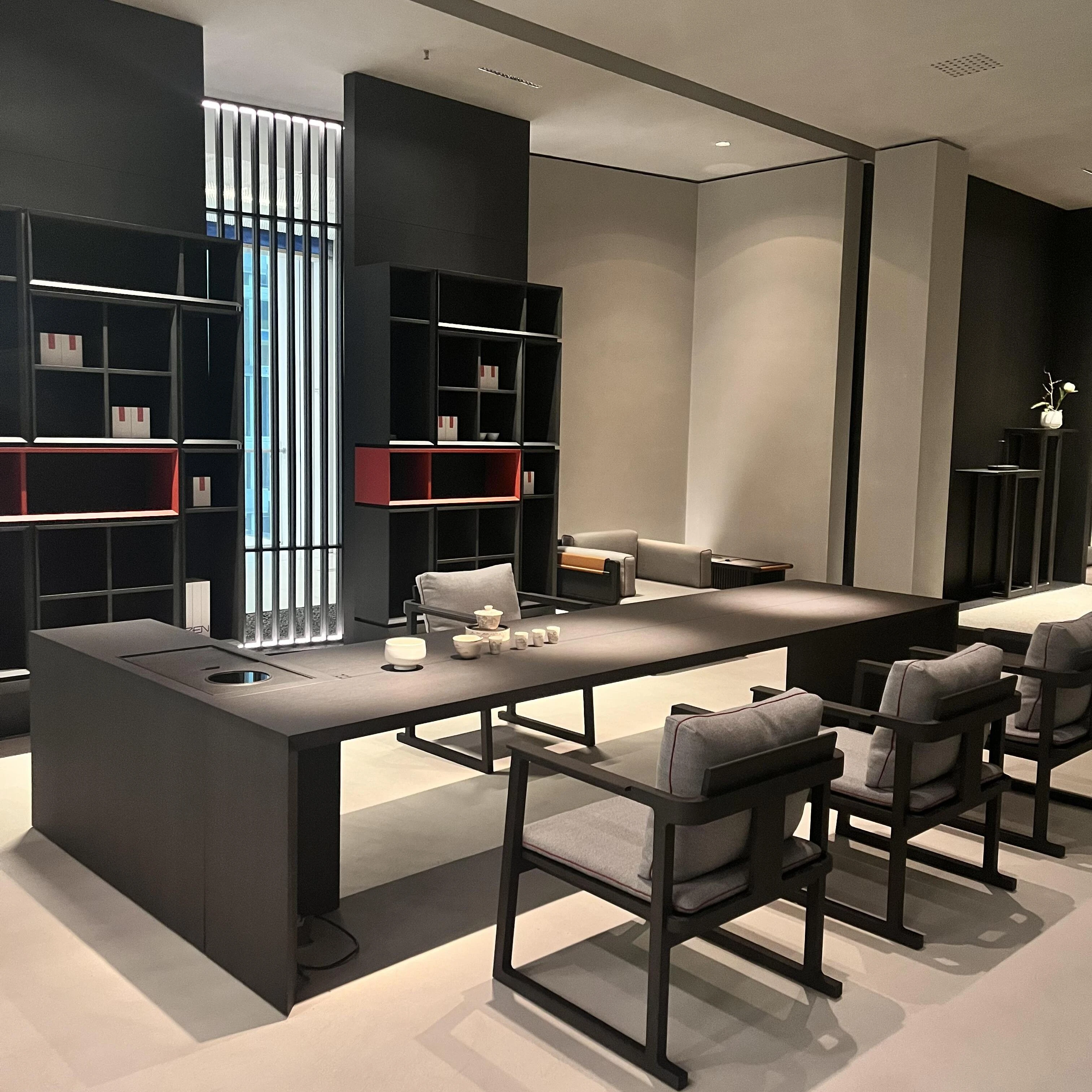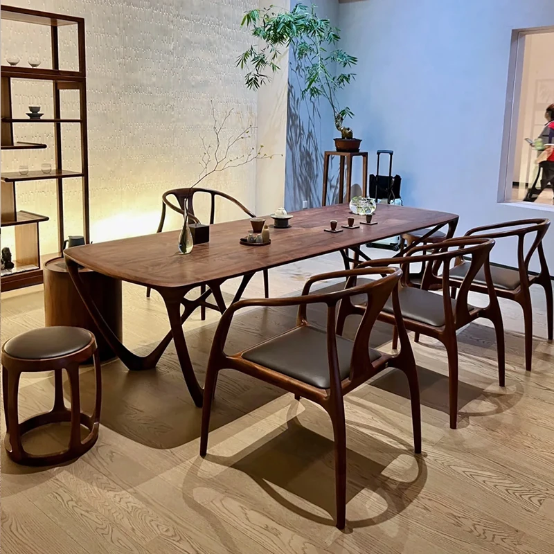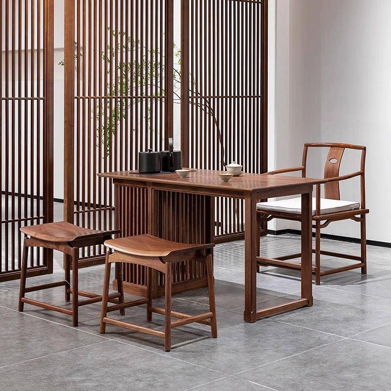 Modern Minimalist Black Walnut Solid Wood Tea Table and Chair Set - Zen-Inspired Tea Brewing Station for Your Tea Room