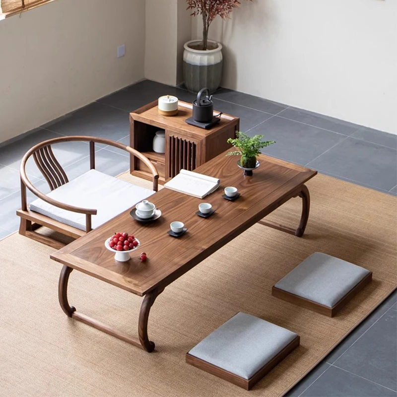 2025 New Compact Walnut Wood Balcony Tea Table – Japanese Tatami Style for Home Use, Perfect for Chinese Tea Brewing and Relaxation.