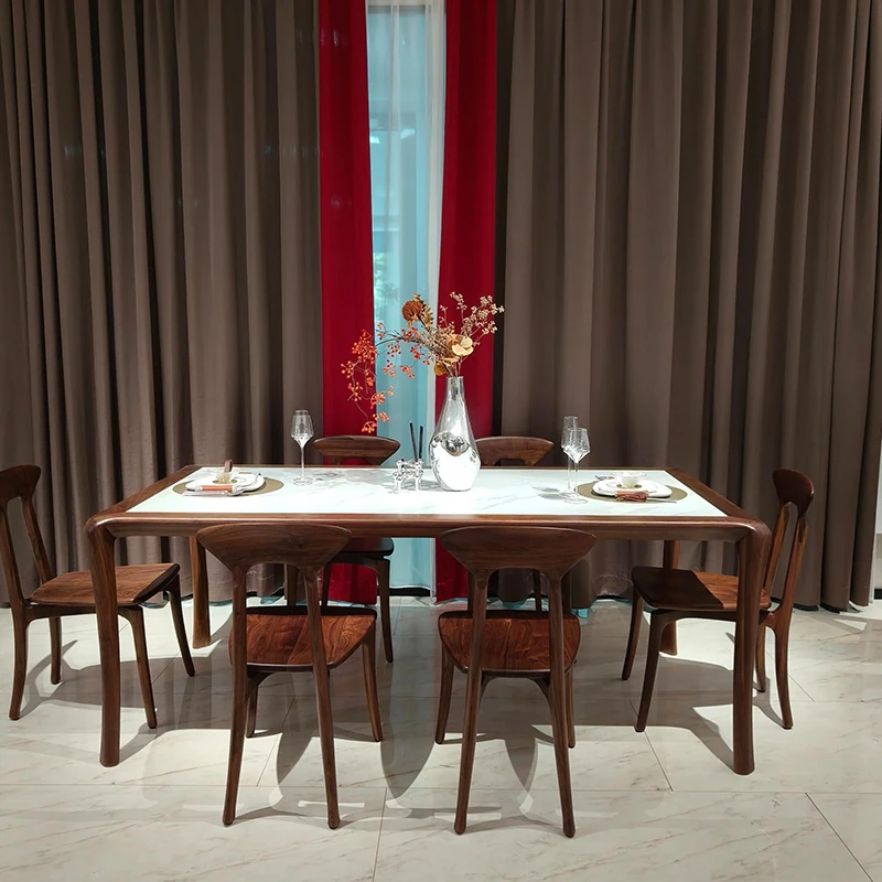 2025 New Modern Minimalist Dining Table - Compact Solid Wood Luxury Long Table with Rock Slab and Walnut Finish for Small Spaces, New Chinese Style