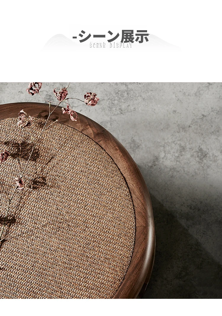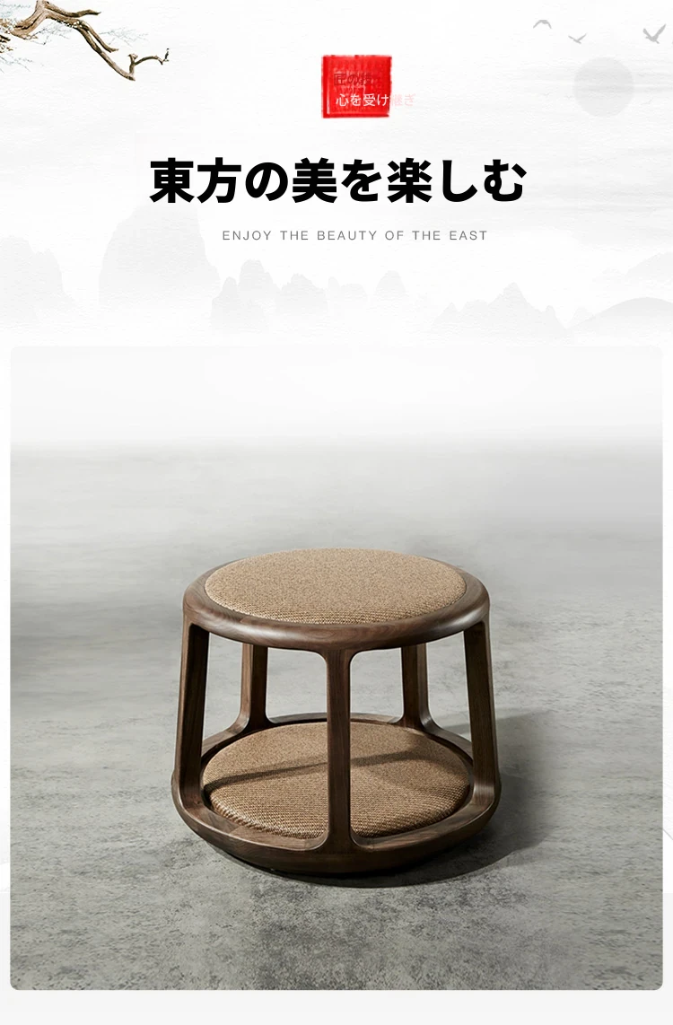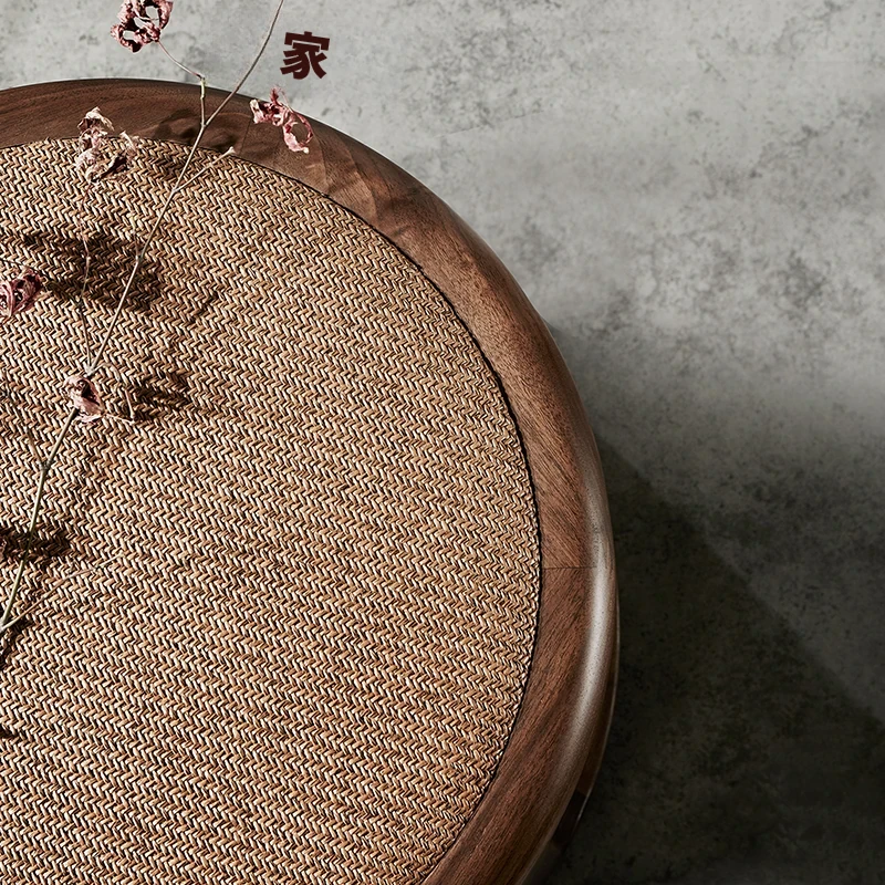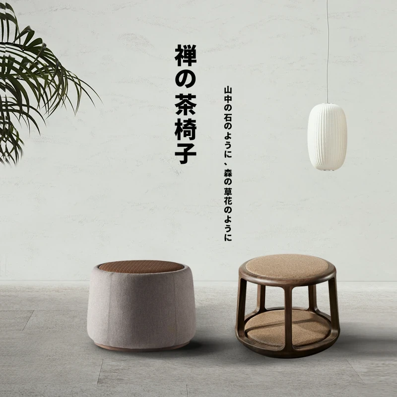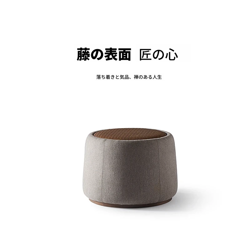 新中式デザインの禅スタイル木製茶凳 - おしゃれな会話の場を演出するシンプルなラウンドソファ。茶室にぴったりな柔らかい布張りのスツールと自然な籐の質感が魅力。心落ち着くひとときを提供します。