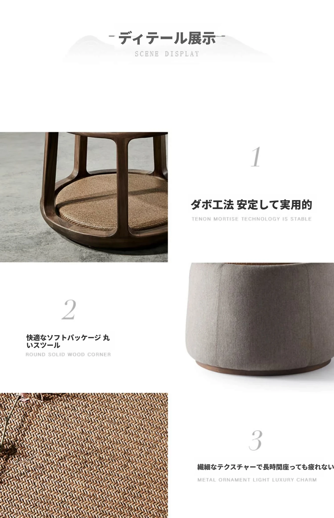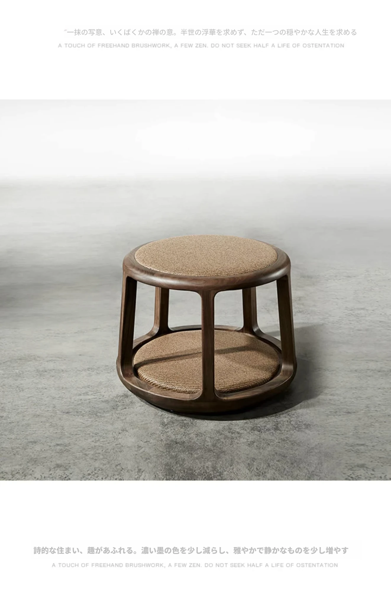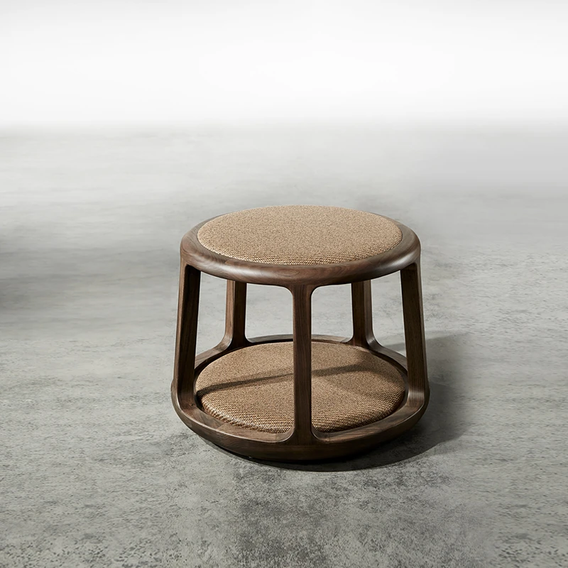 新中式デザインの禅スタイル木製茶凳 - おしゃれな会話の場を演出するシンプルなラウンドソファ。茶室にぴったりな柔らかい布張りのスツールと自然な籐の質感が魅力。心落ち着くひとときを提供します。