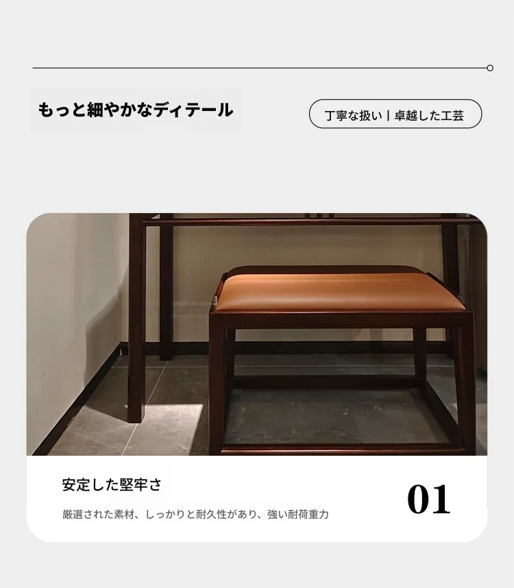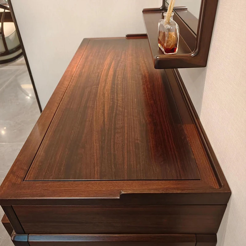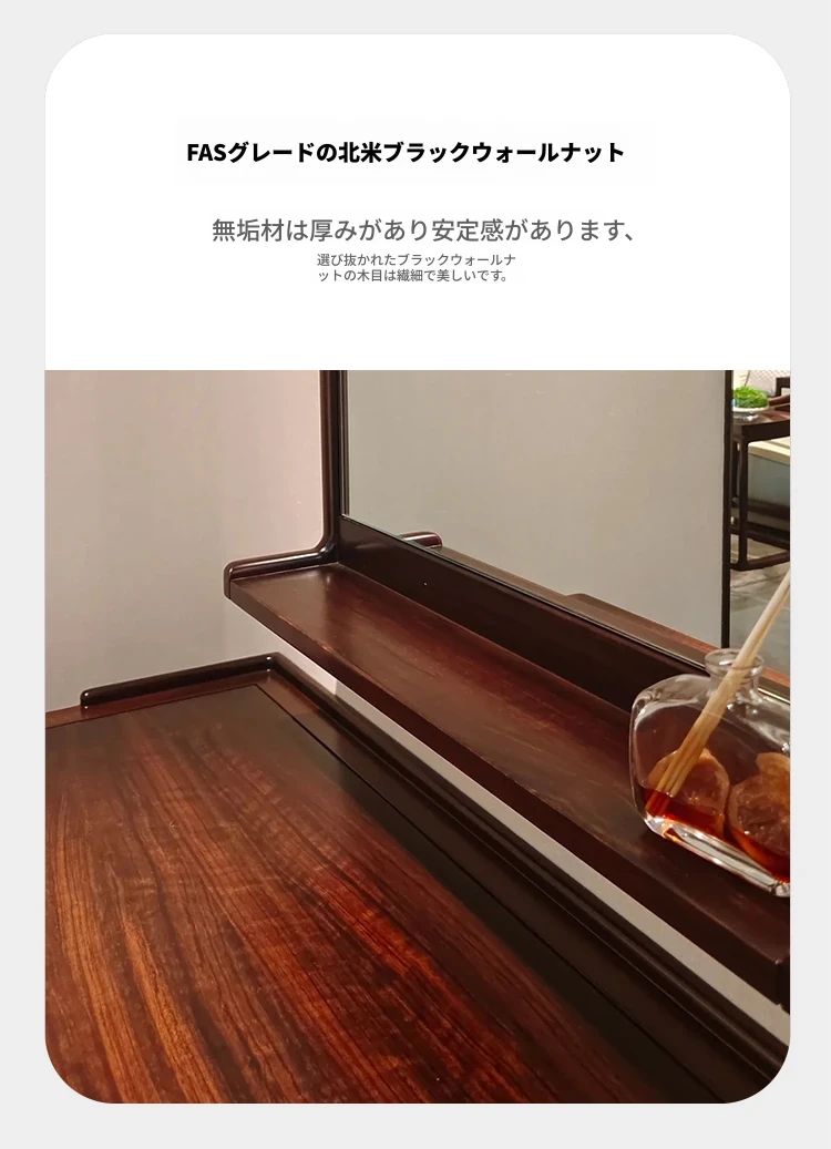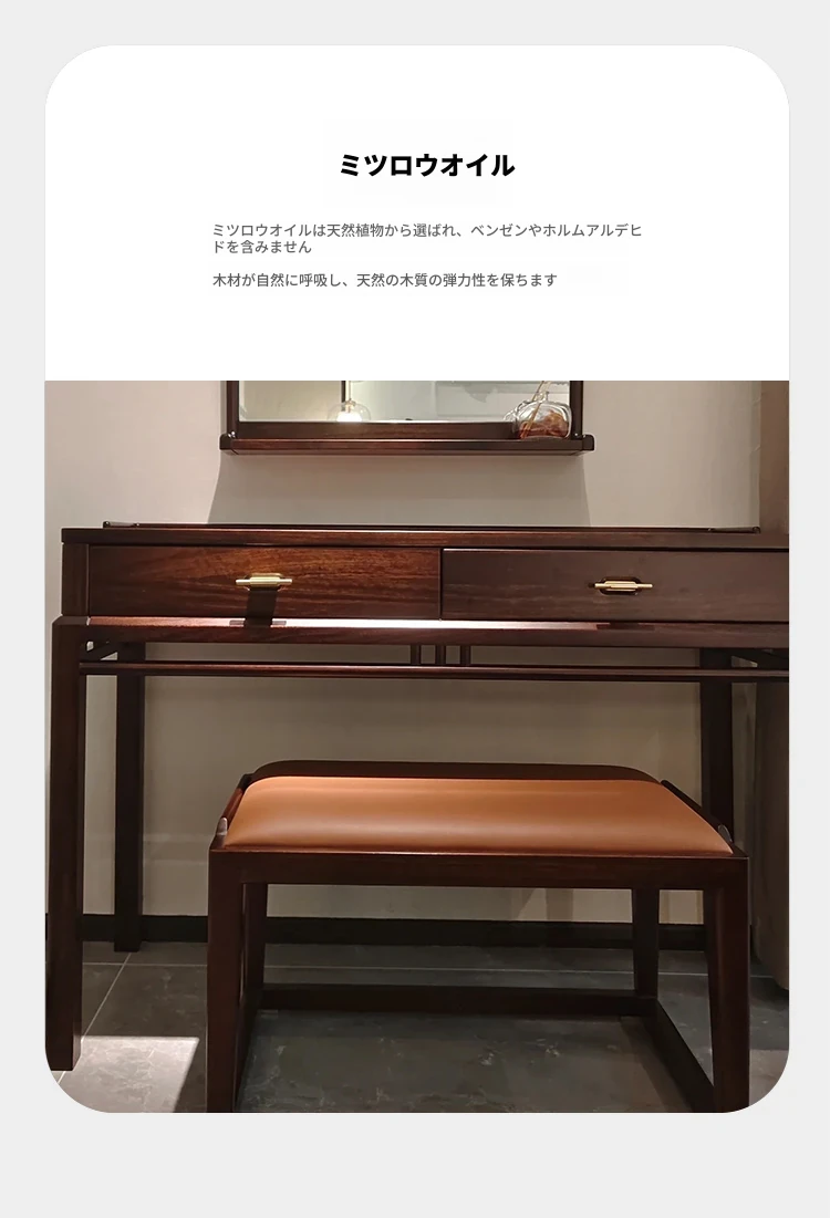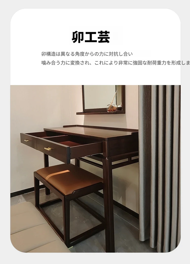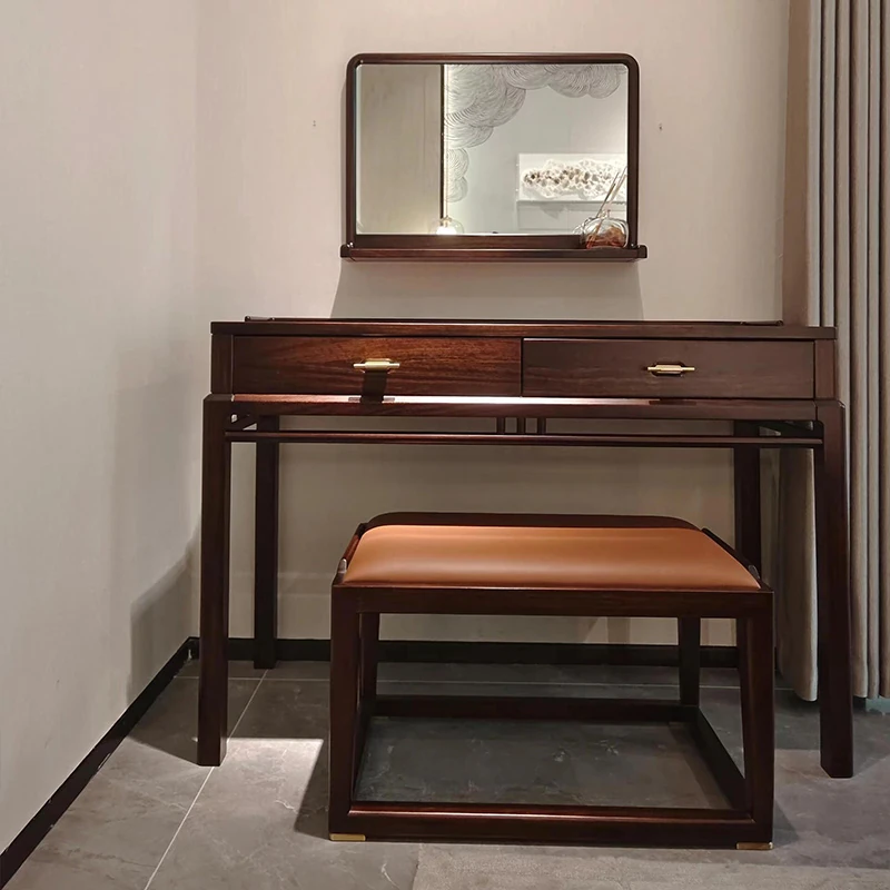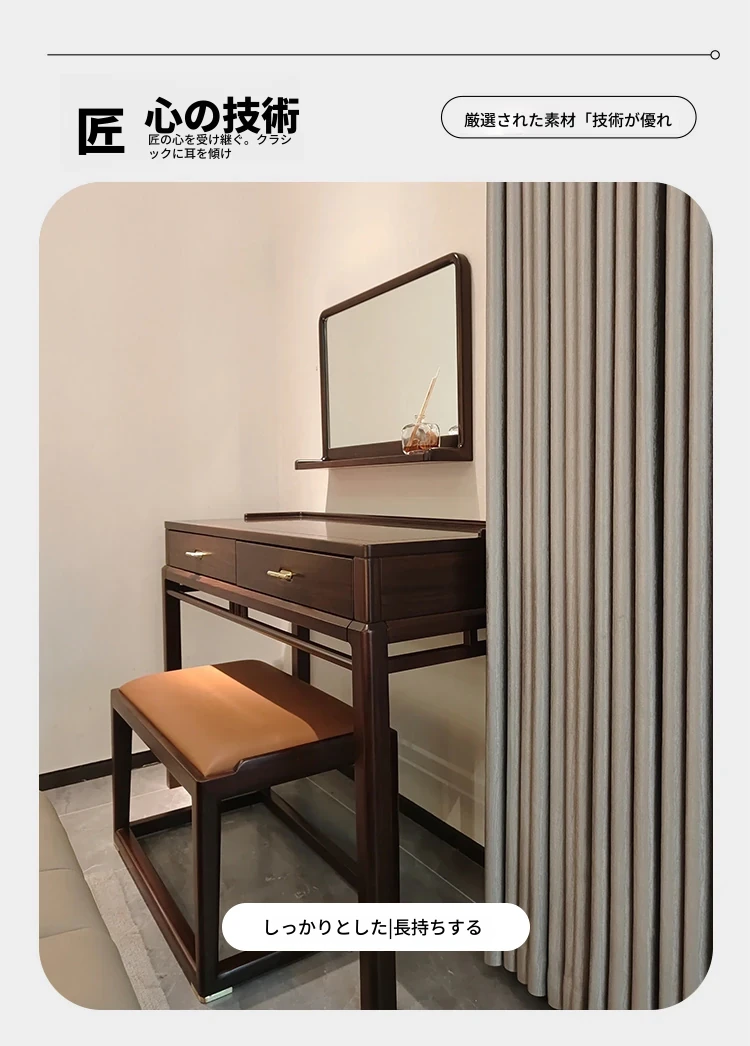 新中式スタイルの無垢材ドレッサー&スツール、ウォールナットウッド使用。モダンでシンプル、宋代の美学を取り入れた化粧台。あなたの寝室を優雅に演出します!