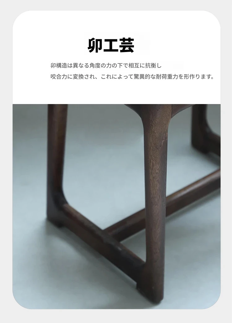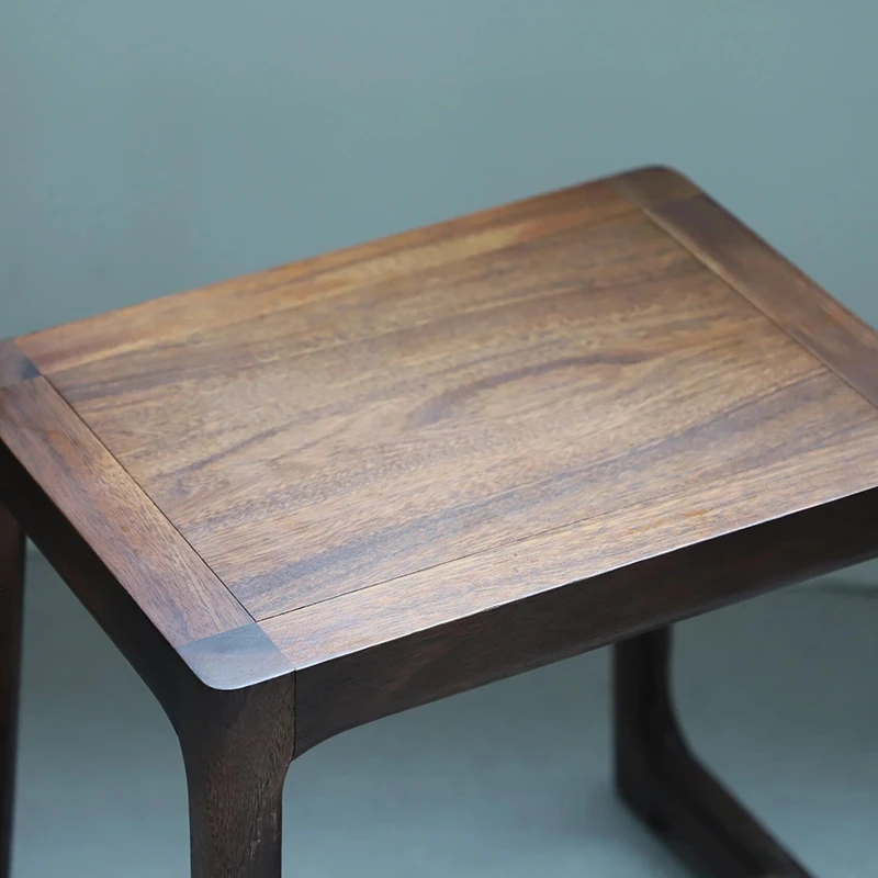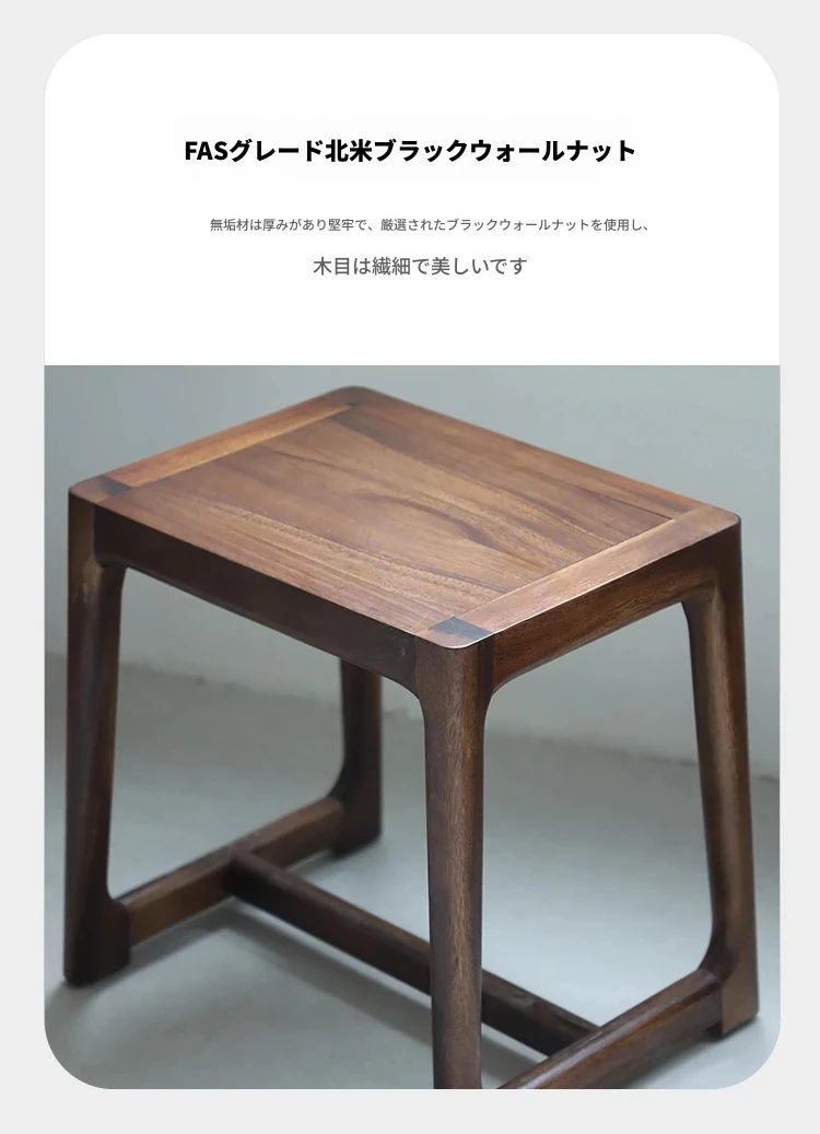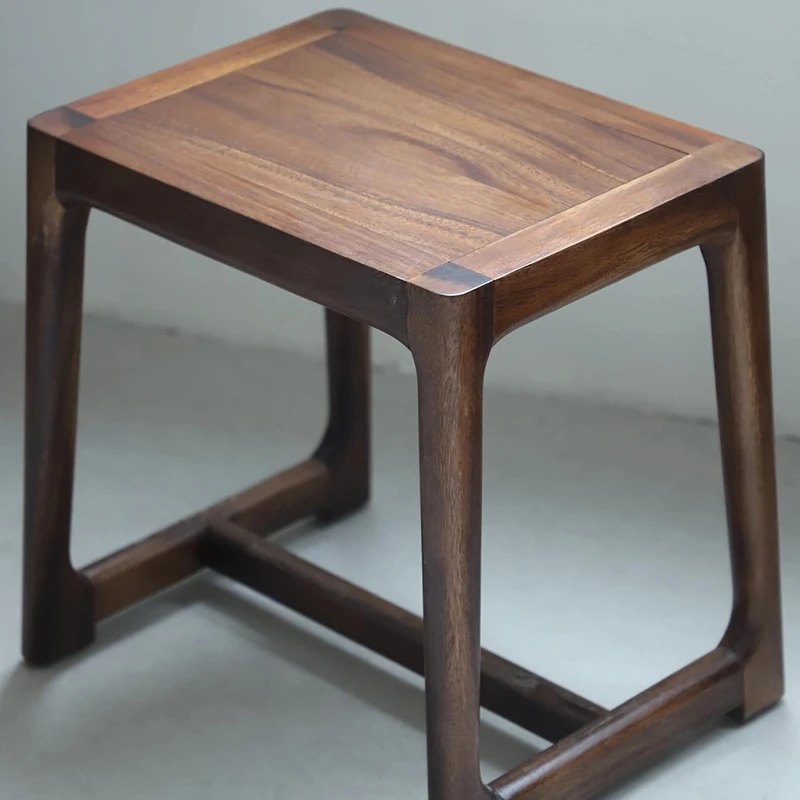 新中式デザインの無垢材スツール - シンプルでモダンなリビング用シューズベンチ、ウォールナットの小型テーブルスツールとしても最適!おしゃれなインテリアを演出する一品。