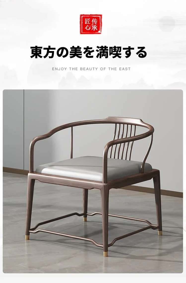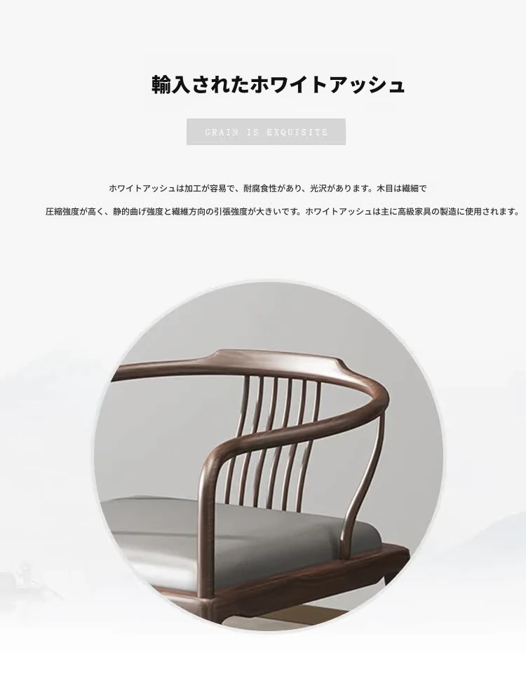 新中式の無垢材サークルチェア - 禅の心を感じる洗練されたデザイン、現代的なシンプルさを兼ね備えた家庭用中国風の読書椅子。心地よい座り心地で、リラックスしたひとときをお楽しみください。