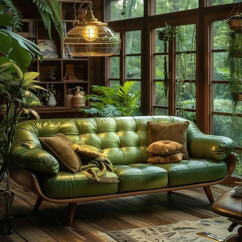 2025年新作!大容量皮革ソファー - 高級感溢れる新中式デザイン、ウォールナット材使用で、リビングや接待スペースに最適!快適なひとときをお届けします。