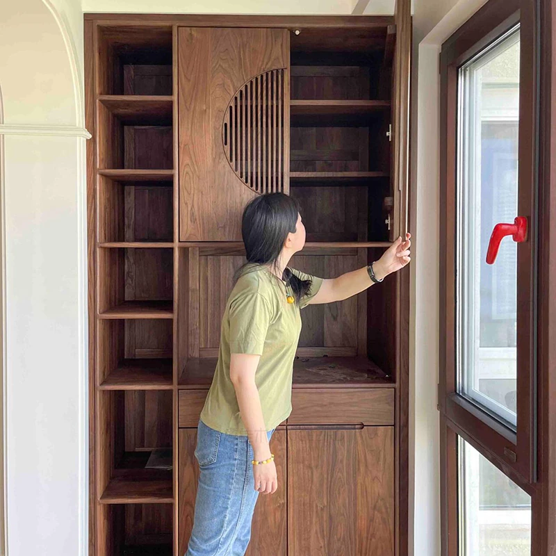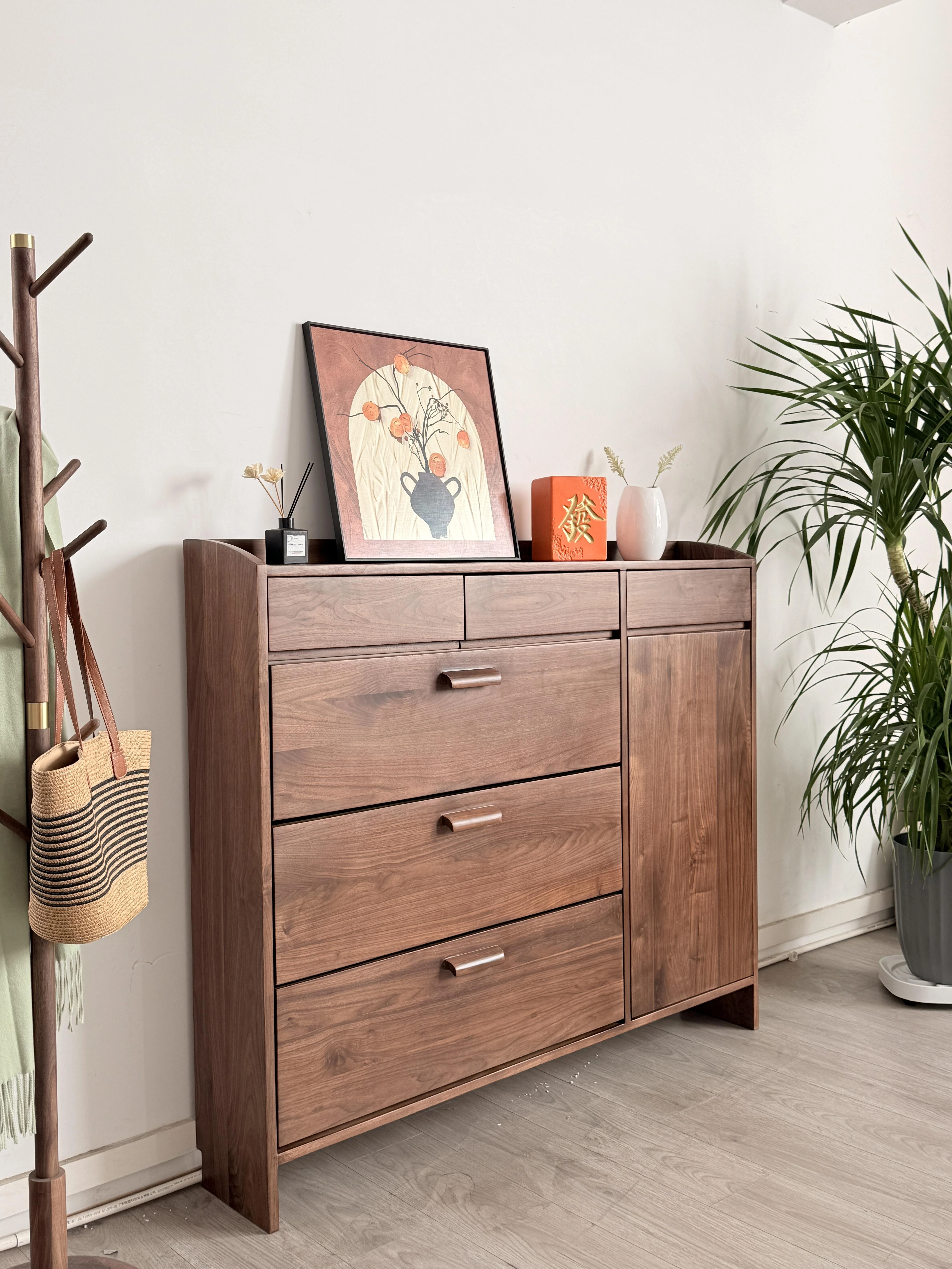 2025年新作!新中式無垢材シューズキャビネット - モダンでシンプルなデザイン、家庭用リビングや玄関に最適。ウォールナットウッドの収納キャビネットで、スタイリッシュにおしゃれな玄関を演出!