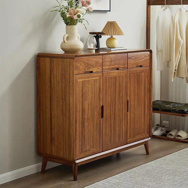 2025年新作!新中式デザインの無垢材シューズキャビネット - モダンでシンプルな家庭用玄関収納、ウォールナット材の収納力抜群!リビングや玄関にぴったりのスタイリッシュなアイテムです。