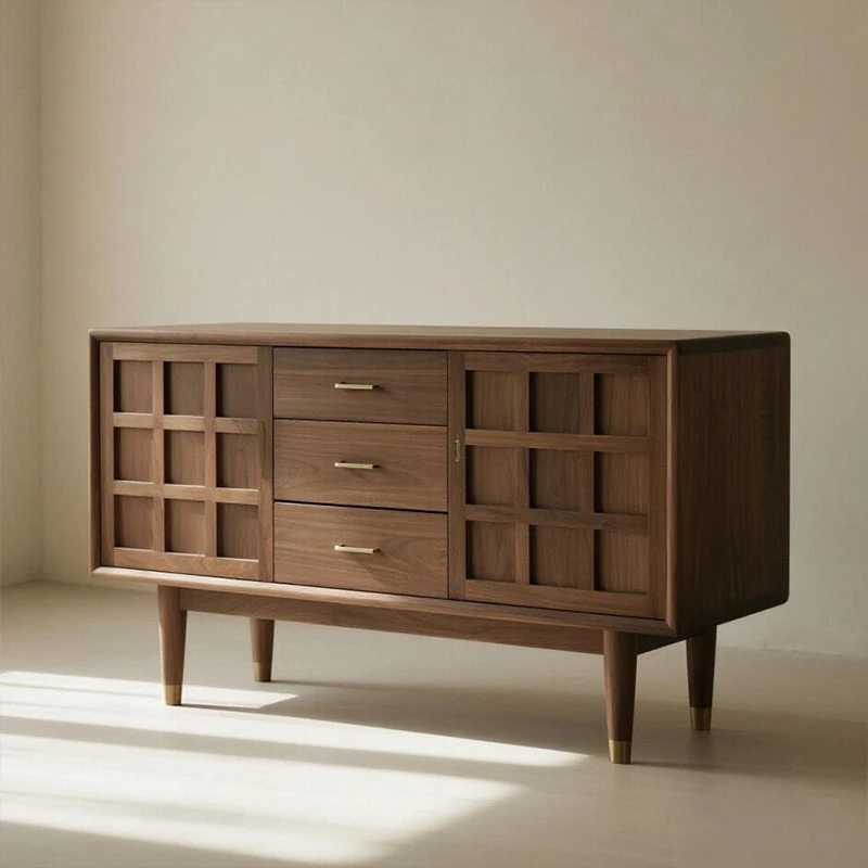新しい中式デザインの無垢材サイドボード 2025年モデル モダンでシンプルな家庭用リビング 中古風のウォールナット収納キャビネット