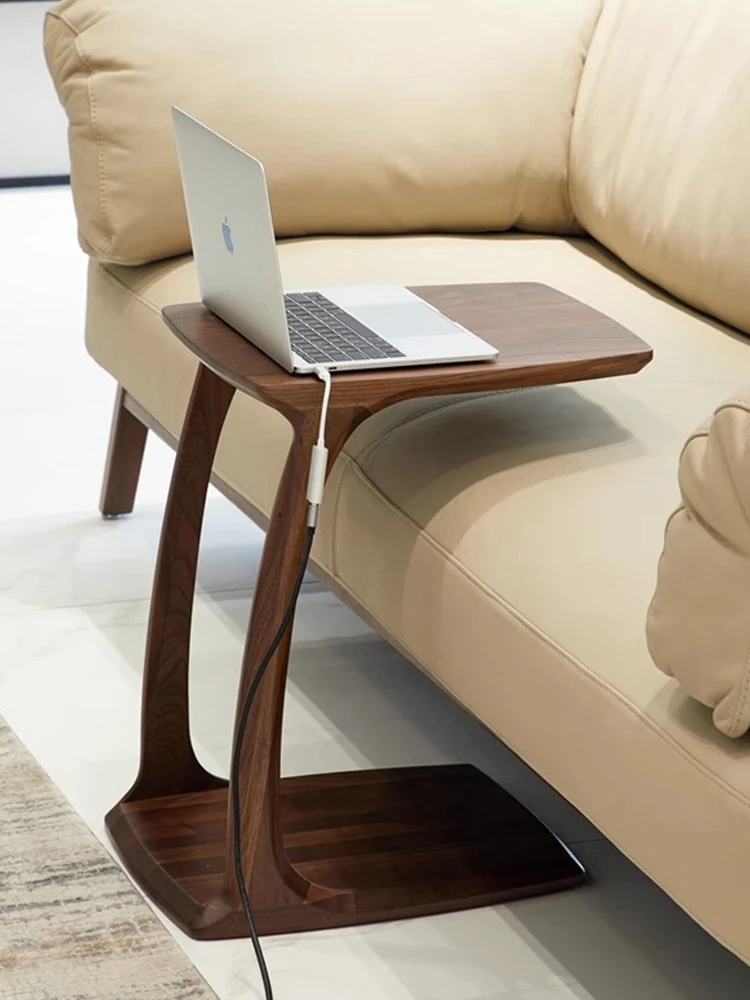 現代の軽奢感漂う小型ソファサイドテーブル、移動可能な無垢材製のウォールナット色ベッドサイドテーブル。クリエイティブな収納デスクで、スタイリッシュな空間作りをサポート!