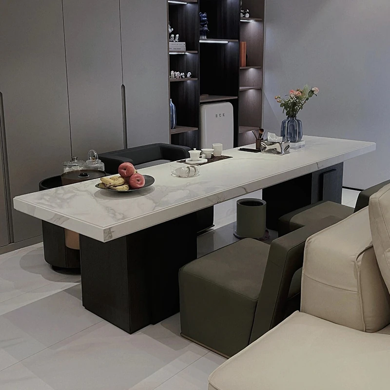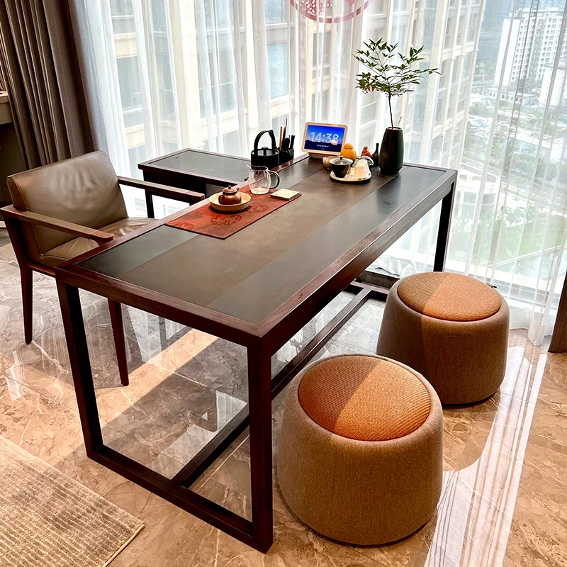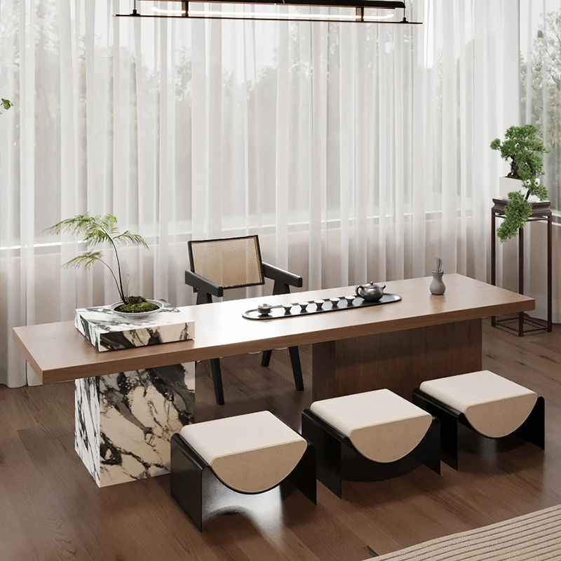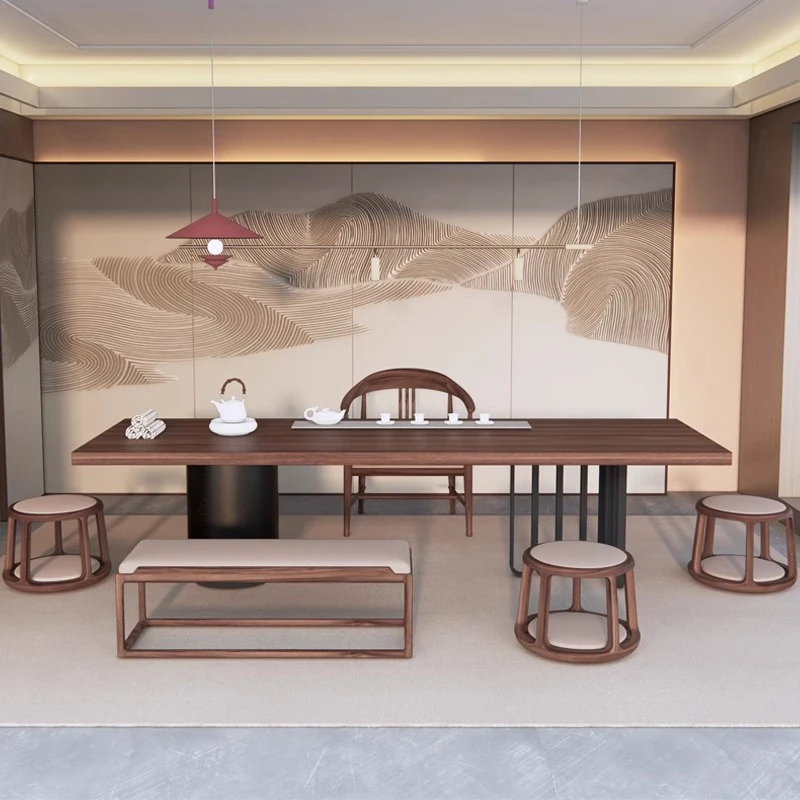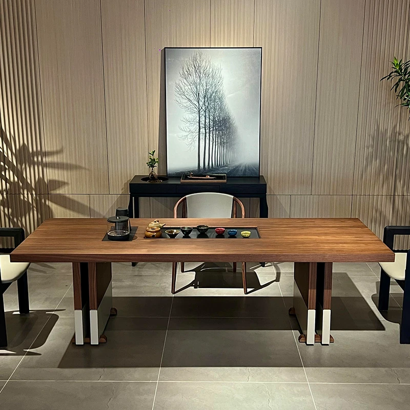 2025年新作!高級感溢れる新中式岩板茶卓—現代的なデザインの軽奢華家用茶卓、ウォールナット材使用。お茶の時間を特別なひとときに。
