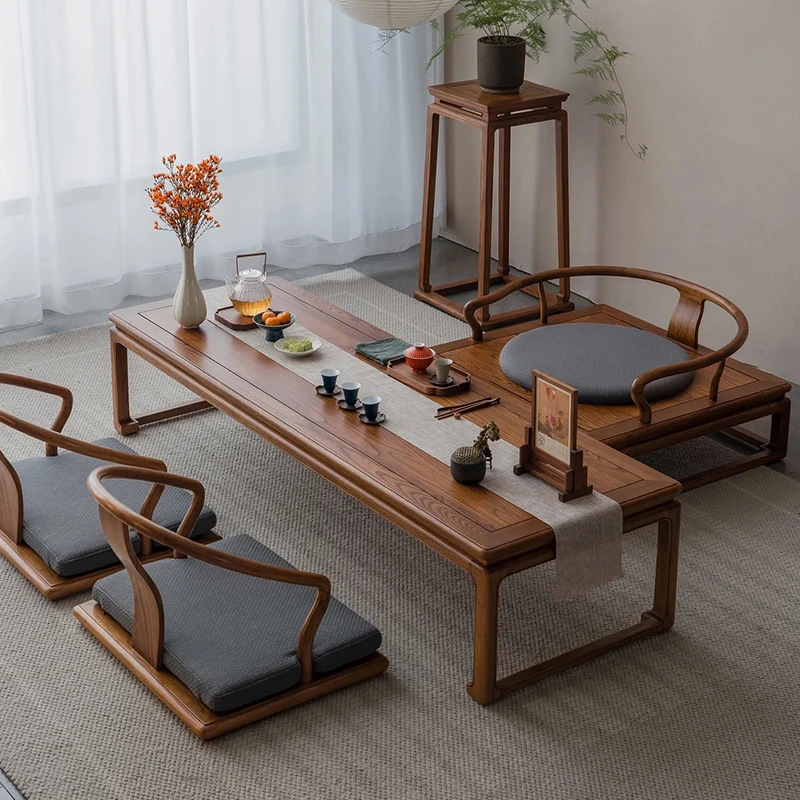 2025年新作!新中式小型実木製ティーテーブル - 家庭用、和風タタミスタイル、リラックスしたティータイムを提供するおしゃれなリビング用茶卓!