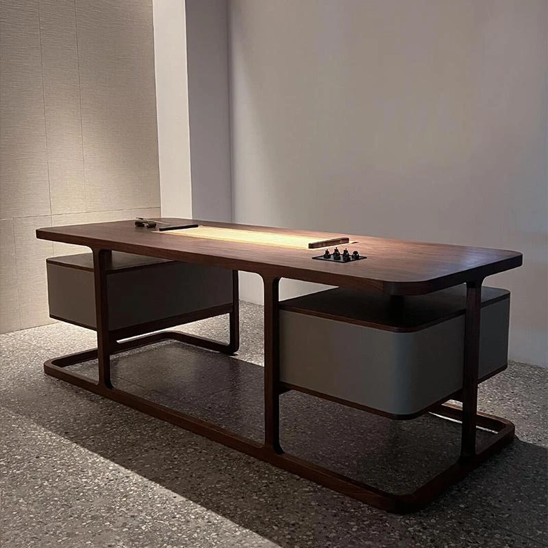 2025年新作!高級感溢れる実木製の茶卓一体型焼水器 - オフィスにも最適なウォルナット材使用の茶台で、贅沢なひとときをお楽しみください!