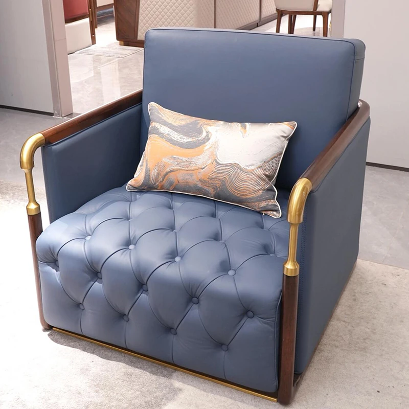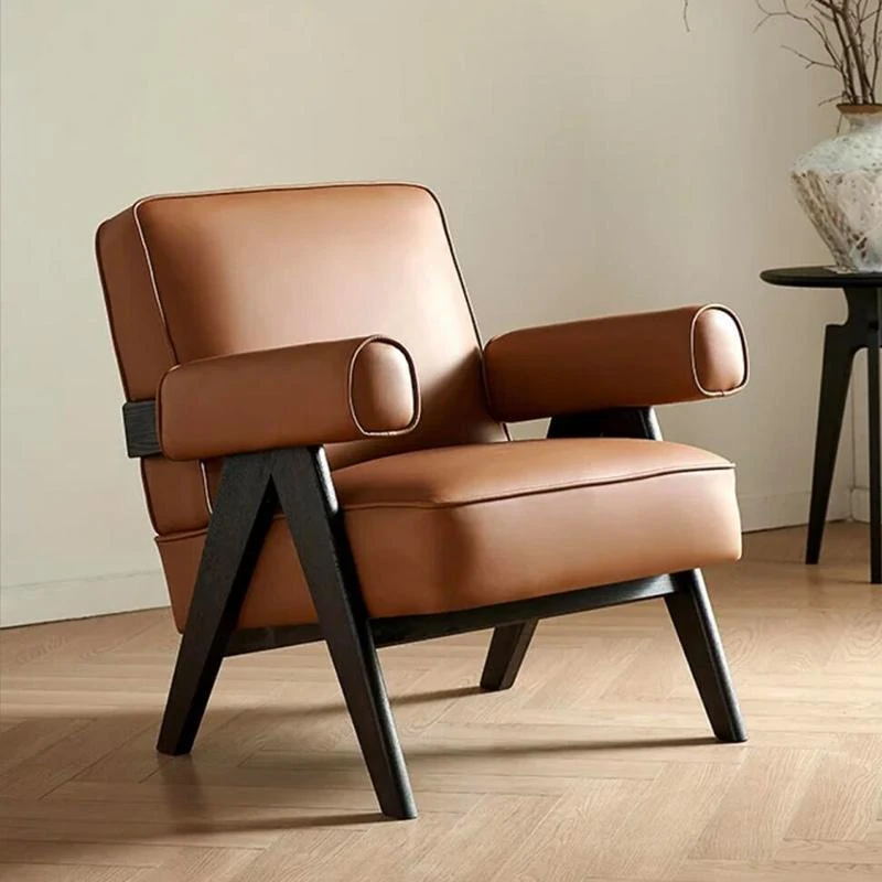 新中式スタイルのレザー製リクライニングソファチェア - 1人掛け、居間に最適なレトロデザインの休憩椅子。ホテルやデザイナー向けにピッタリな現代的な美しさを演出!