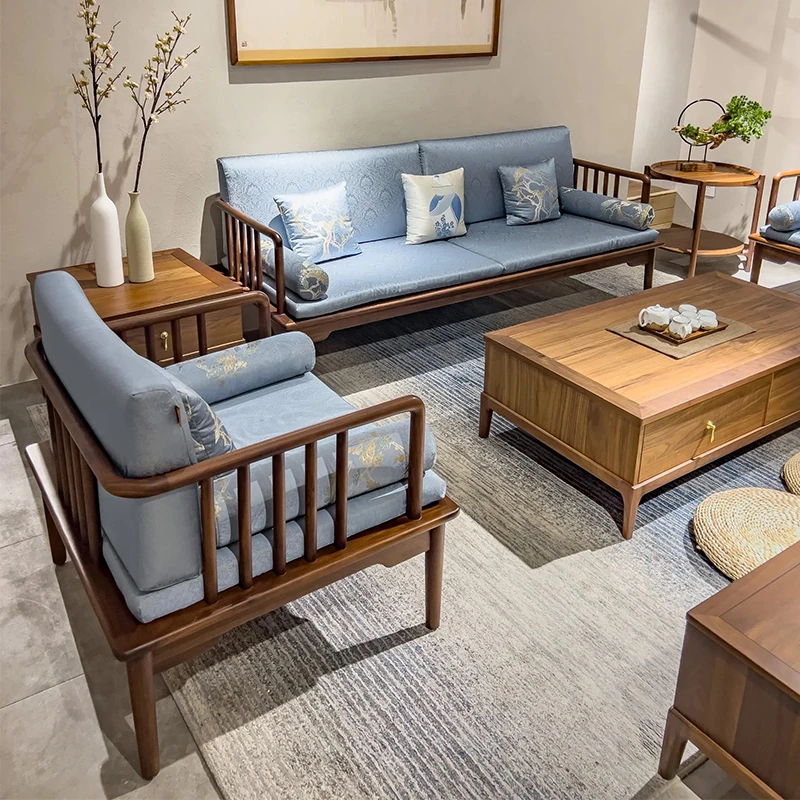 新中式2025年新作!胡桃木製のシンプルモダン軽奢スタイルソファ。実木と布の絶妙な組み合わせで、洗練されたリビング空間を演出します。スタイリッシュなお部屋を実現するための理想のアイテムです!