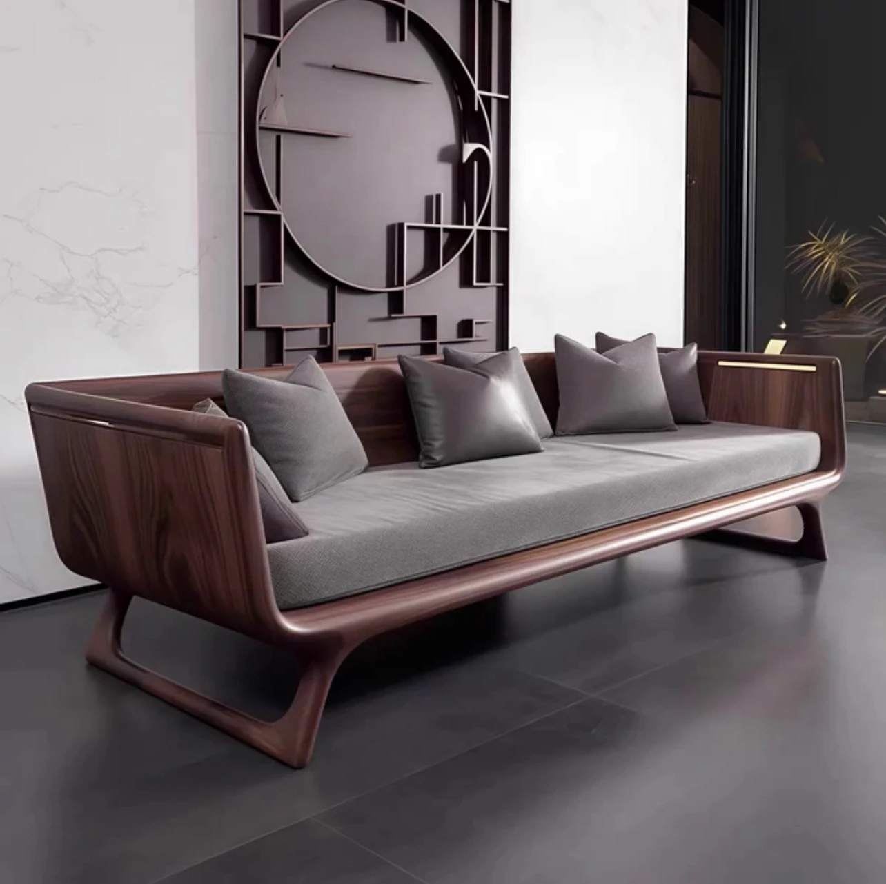 新中式の無垢材ソファ2025年新作!モダンでシンプルなデザイン、家庭にぴったりな3人掛けソファ。高級ウォールナット材使用で、上質なひとときを演出します。おしゃれで快適な空間を実現!