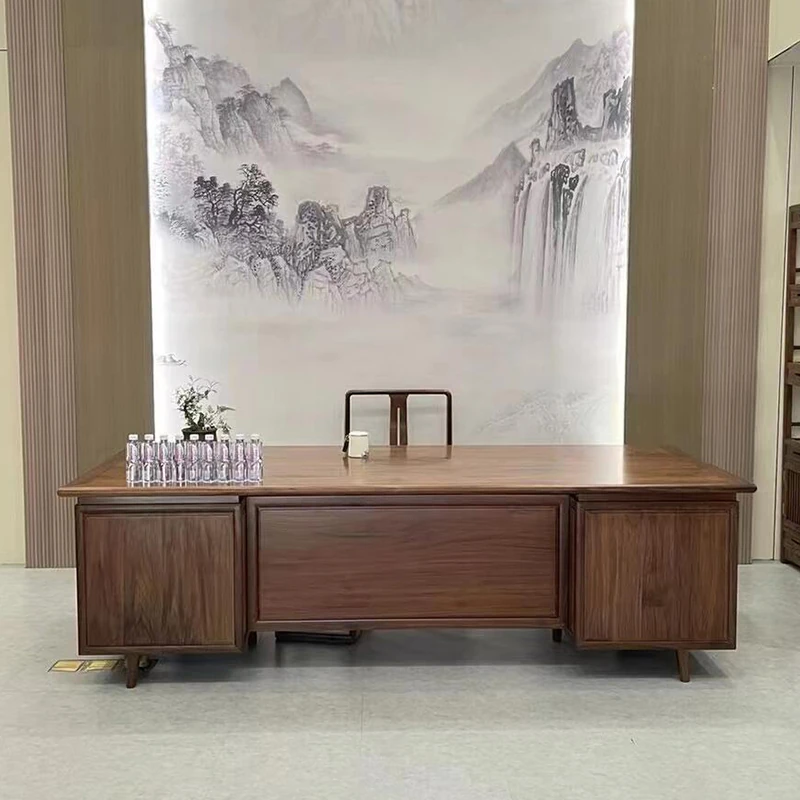 2025年新作!高級感溢れる新中式デザインの実木製パソコンデスク。オフィスや自宅にぴったりなウォールナット材使用の書斎デスクで、スタイリッシュな空間を演出します。