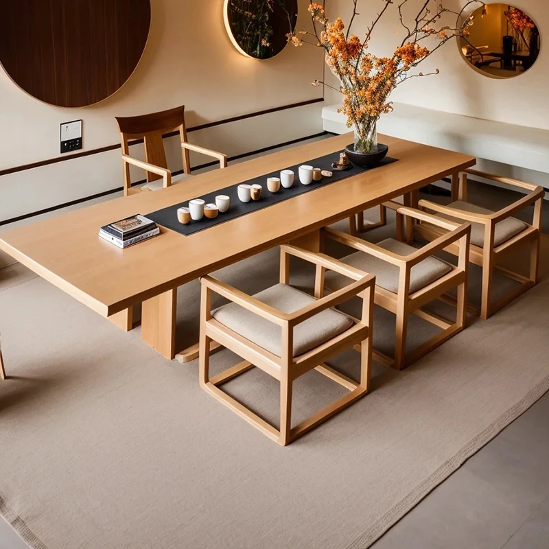 新中式茶道の禅の美、シンプルなデザインの無垢材茶卓セット。おしゃれな茶室にぴったりの茶器テーブル、リラックスできる空間を演出します。茶芸を楽しむための理想的な家具です。