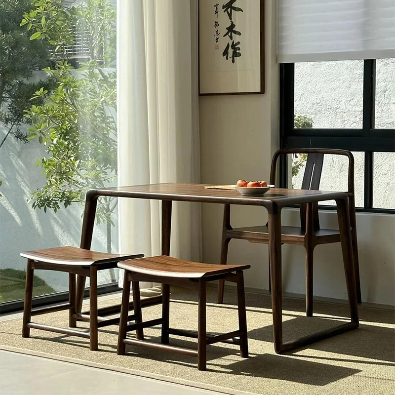 2025年新作!高級新中式八仙桌 - 正方形・軽奢・無垢材使用のクルミ材製。リビングに最適な洗練されたデザインで、家族や友人との特別なひとときを演出します。