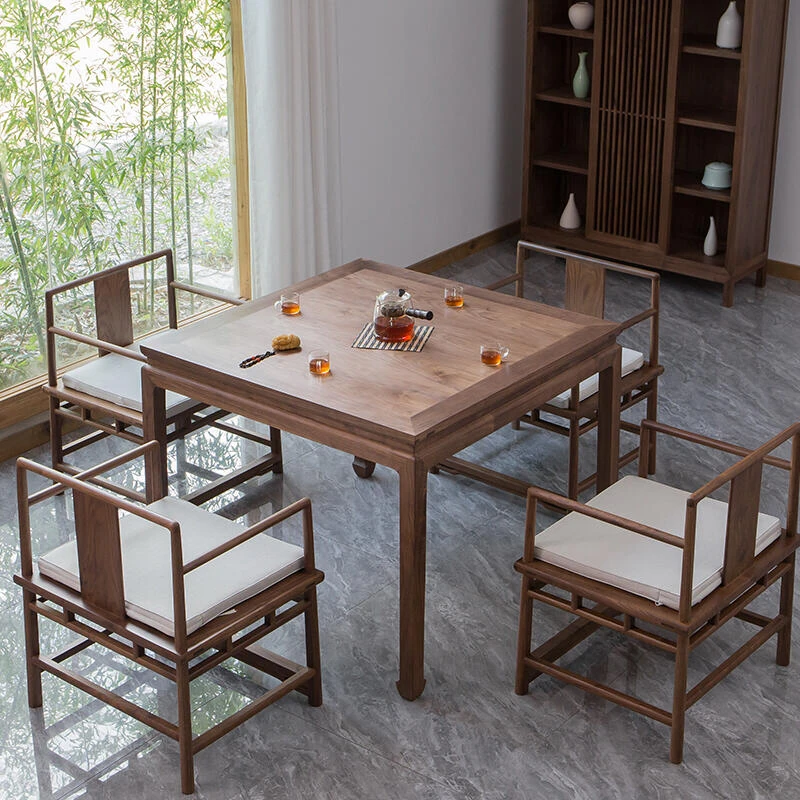 新中式ホワイトアッシュ木製ティーテーブル - 北米ウォールナットの榫卯工法による4人用正方形全実木茶卓。優雅なデザインで、心地よいティータイムを演出します!