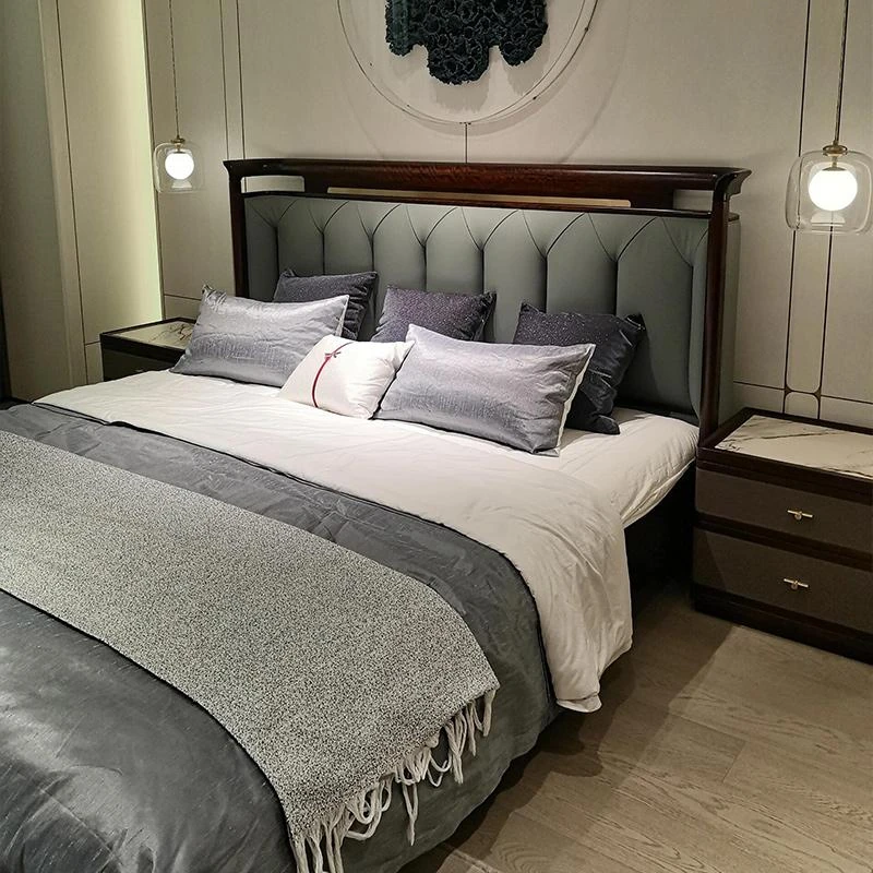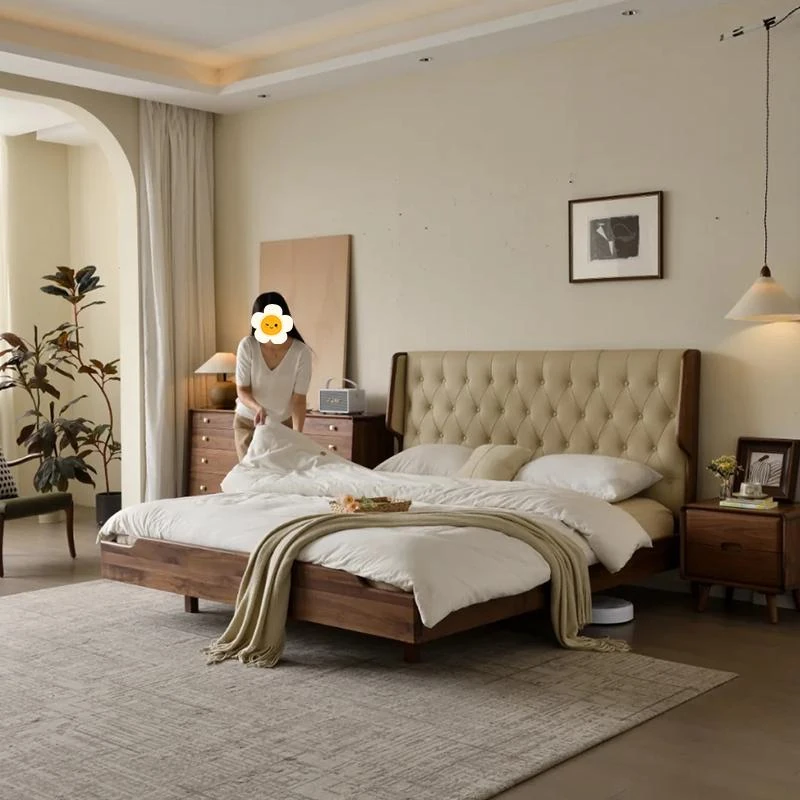 新中式デザインの高級ダブルベッド|2025年新作・レザーソフトパッケージ・軽やかなラグジュアリー・ウォールナット材使用|主寝室にぴったりのエレガントな選択!