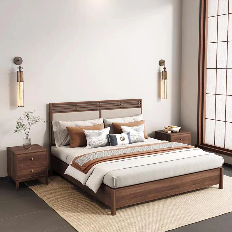 2025年新作!新中式スタイルの無垢材製ベッド、モダンでクラシックなデザイン。ウォールナットの軽やかな高級感が漂う主寝室用ダブルベッドで、上質な眠りをお届けします。