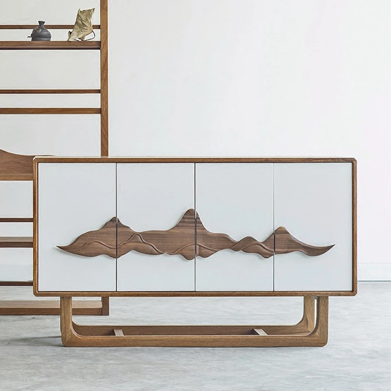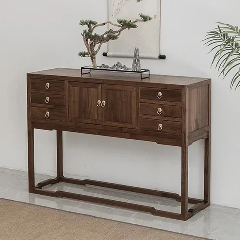 新中式スタイルの玄関キャビネット - モダンでラグジュアリーな高級入門収納家具。ウォールナット材使用の実木製ダイニングキャビネット、洗練されたデザインでお部屋を引き立てます。収納力抜群で、生活空間をスタイリッシュに演出!