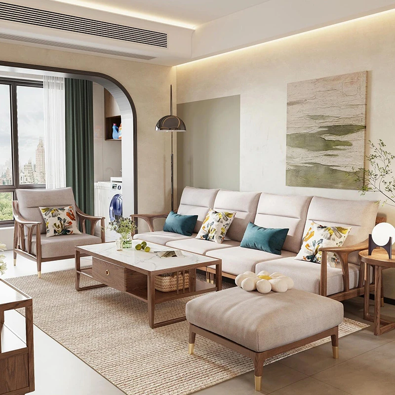 2025年新作!新中式実木ソファ - モダンでシンプルなデザイン、広々としたリビングにぴったりのウォールナットソファ。あなたの家に上質なくつろぎを提供します!