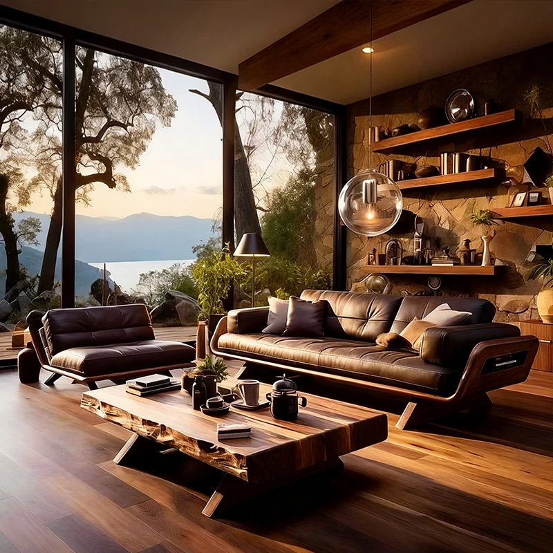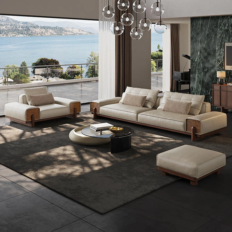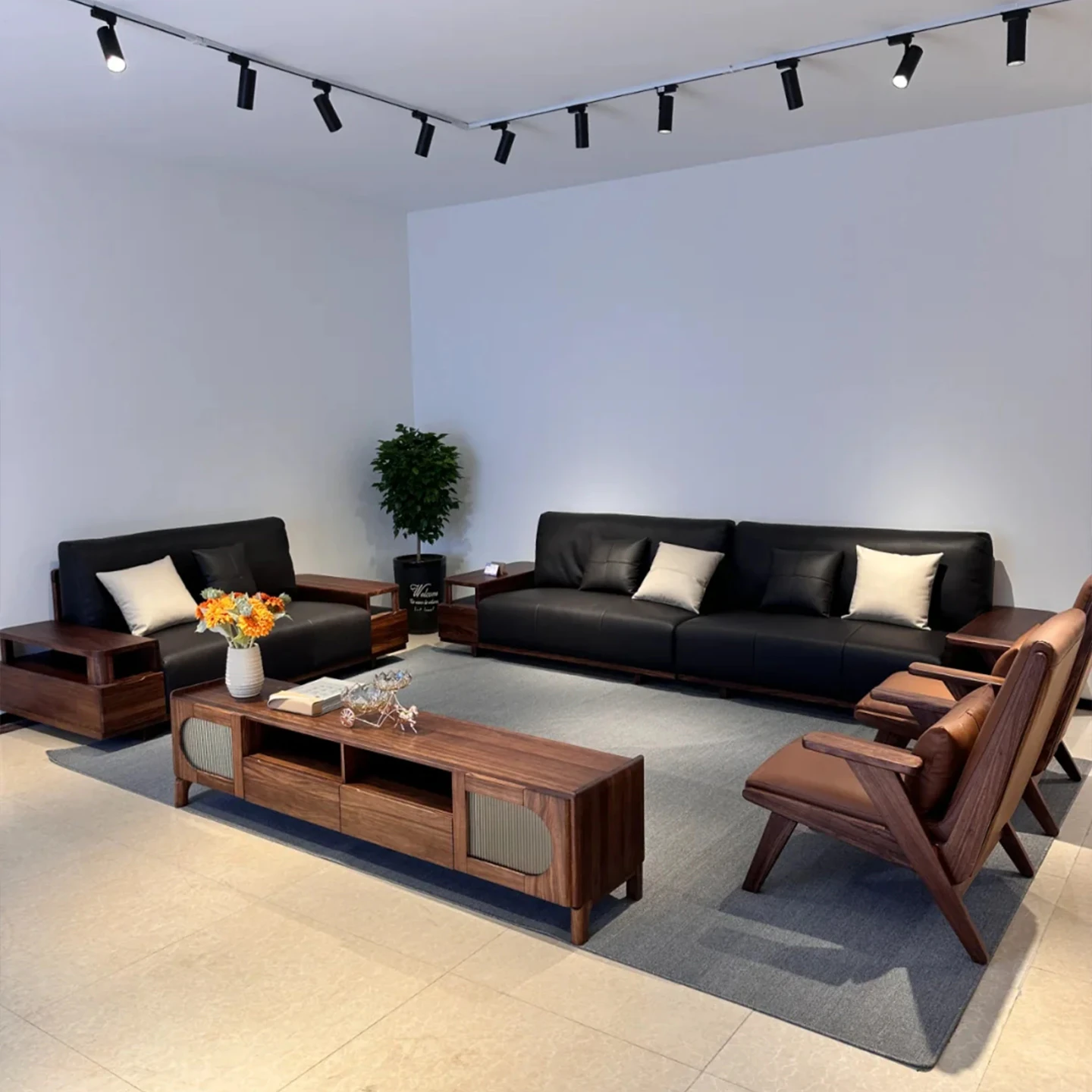 新中式デザインの2025年最新モデル!モダンでシンプルな実木製ソファ。ウォールナット材を使用したおしゃれなリビング向け、イタリアンスタイルのレザー接客ソファで、心地よい空間を演出します!