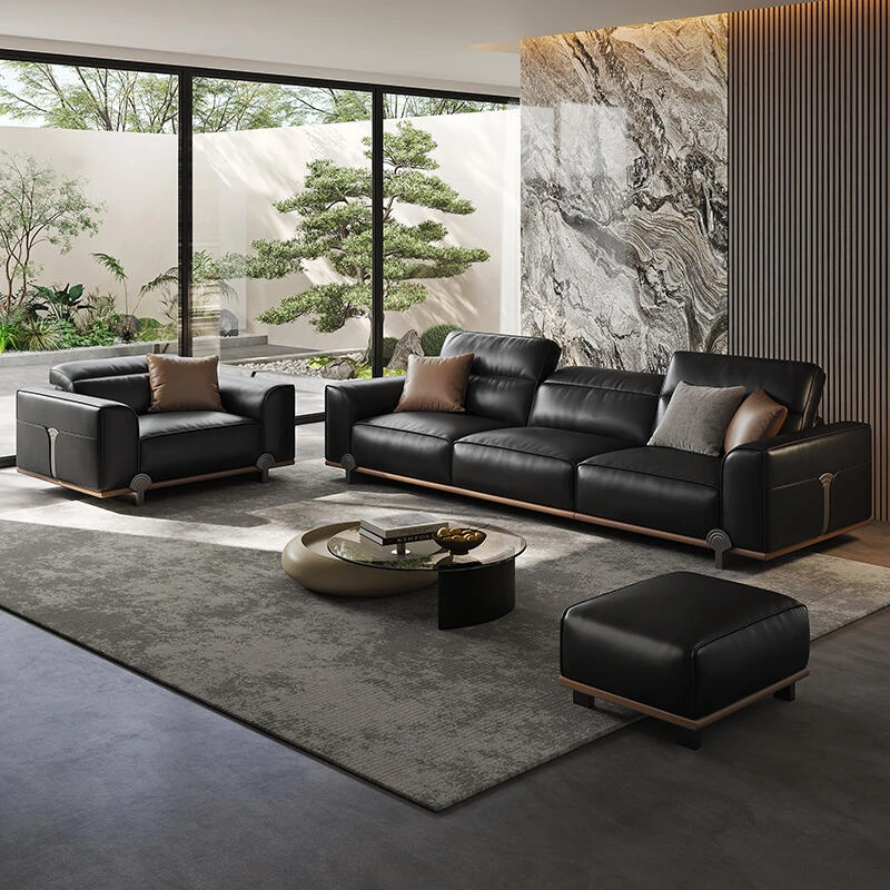 2025年新作!大黒牛モダンシンプル家庭用レザーソファ - 中古風デザイン、イタリアンウッドの贅沢な質感を体験しよう!快適さとスタイルを兼ね備えたリビングの必需品です。