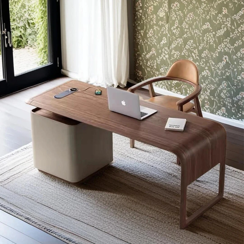 2025年新作!高級感溢れるウォールナット製のデスク&茶卓一体型。シンプルな中式デザインで、オフィスやリビングにぴったりの多機能テーブル!洗練された空間を演出します。