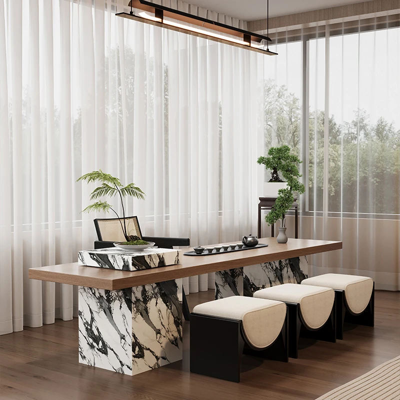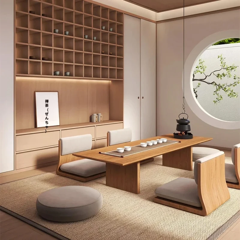 新中式茶卓椅セット - 禅の心を感じる高級無垢材製のシンプルな茶道テーブル。洗練されたデザインで、茶室にぴったりのスペースを演出します。心安らぐひとときをお楽しみください。