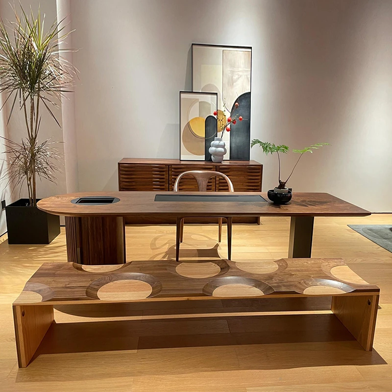 2025年最新デザイン!高級感溢れる胡桃木製の茶卓。新中式の軽奢スタイルで、家庭での茶のひとときを特別に演出します。シンプルで洗練されたデザインが、あなたのリビングを格上げします!