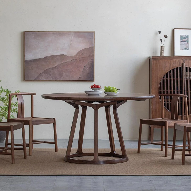 新中式ラウンドテーブル 軽やかで贅沢なウォールナット製 モダンな無垢材ラウンドダイニングテーブル シンプルなウッドターンテーブル リビングルームにぴったりの家庭用デザイン
