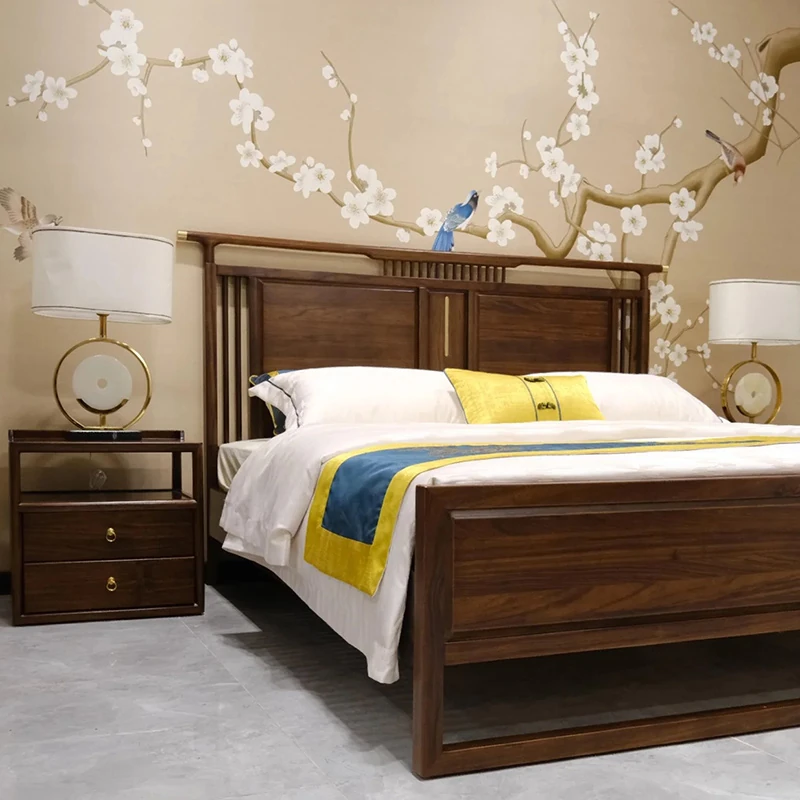 1.8mの高級天然木製ダブルベッド - 2025年新作ウォールナット材、モダンでシンプルなデザインの主寝室用結婚ベッド。快適な睡眠を約束します!