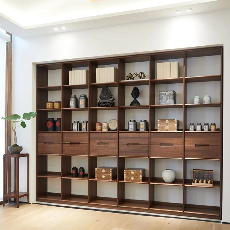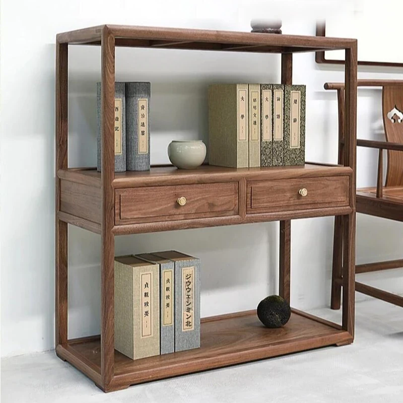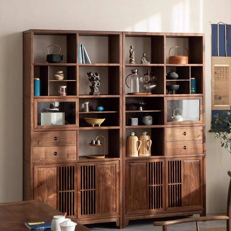 2025年新作!シンプルでスタイリッシュな実木製展示キャビネット - お茶室に最適な胡桃の多宝阁。お茶の美しさを引き立て、収納力抜群!新中式デザインで、あなたの空間に洗練された雰囲気をプラス。